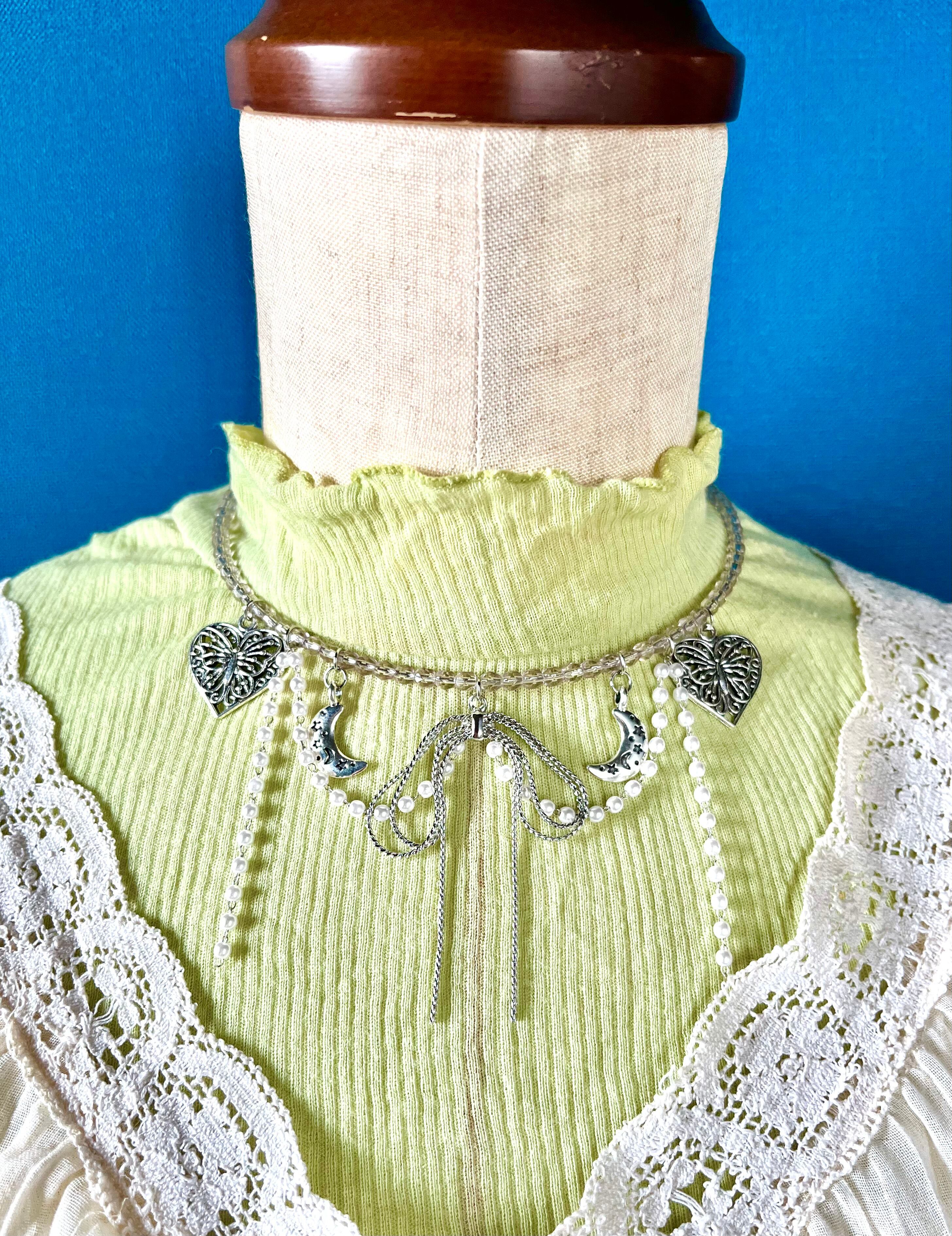 夏の空の下が似合うシルバー×ピンクのワイヤーチョーカー。チャームつきとチャーム無しのデザインがあります。