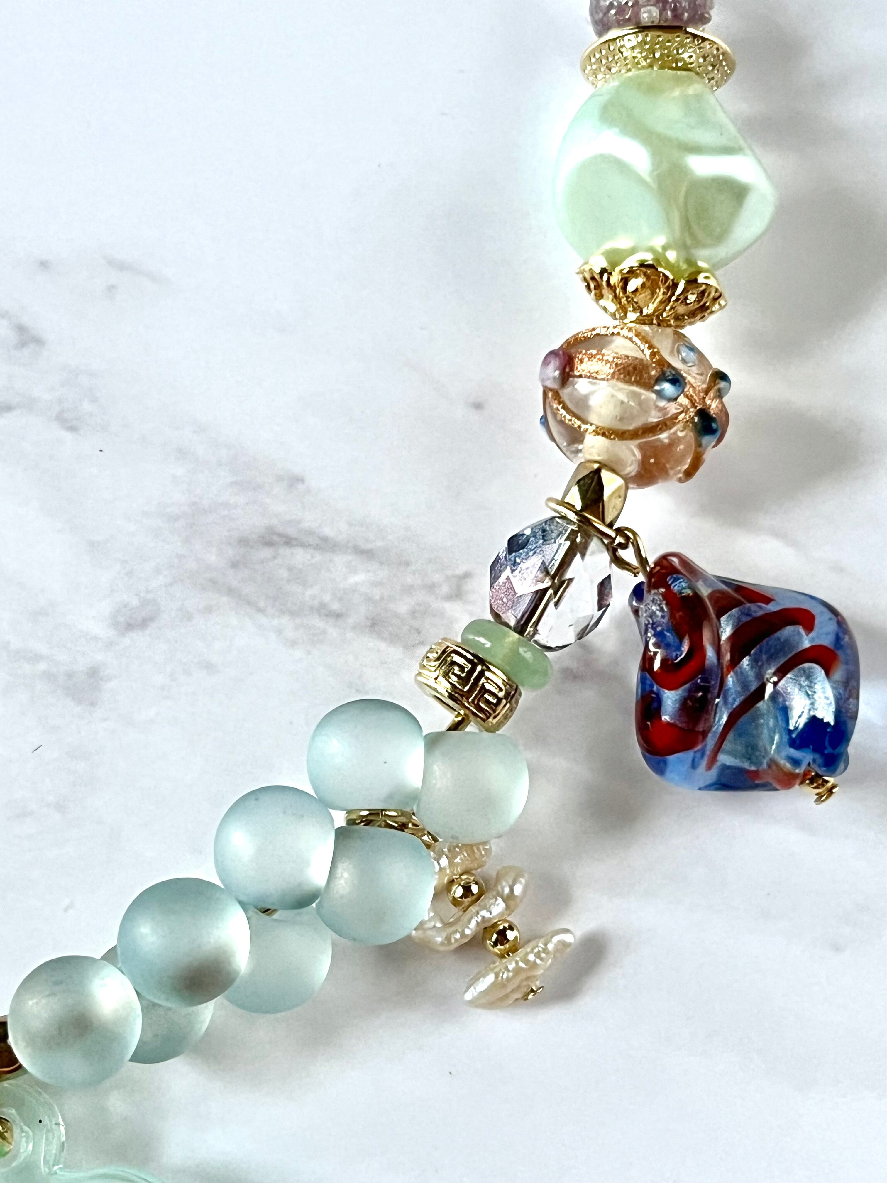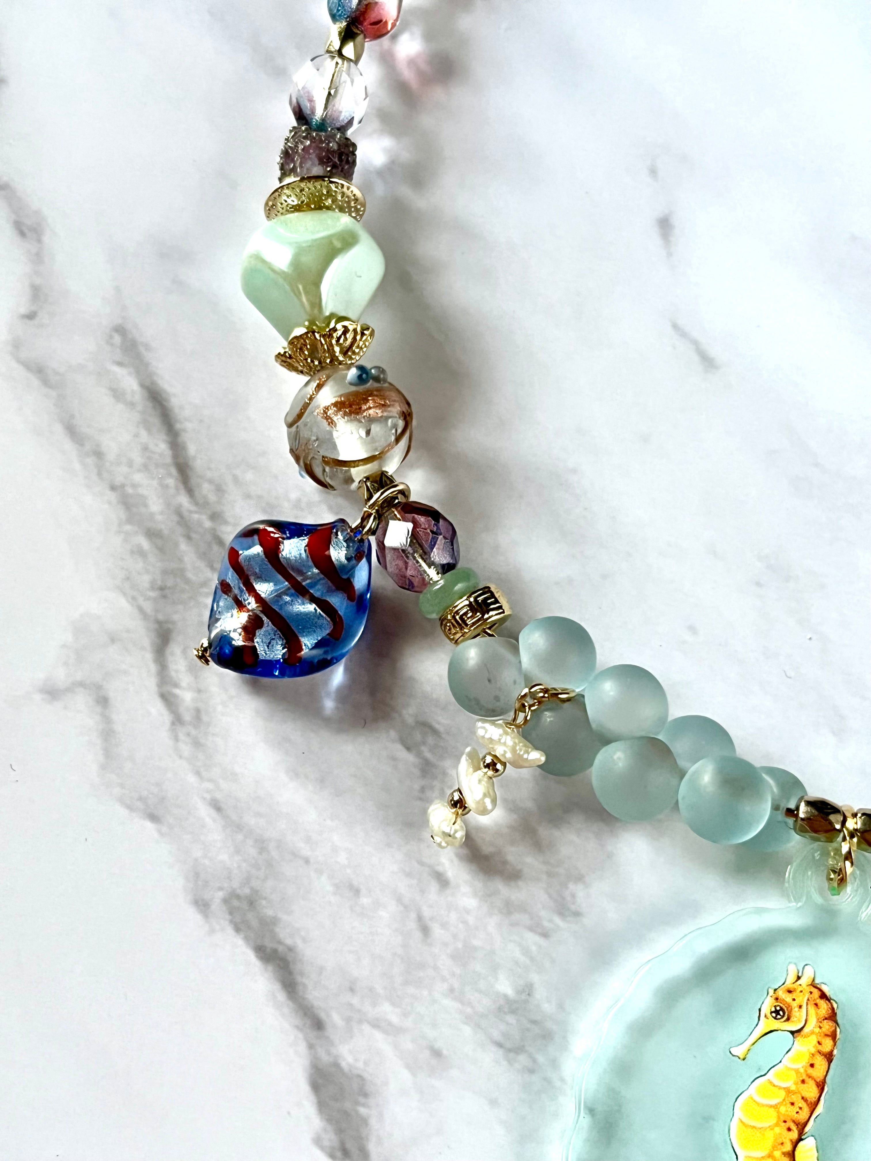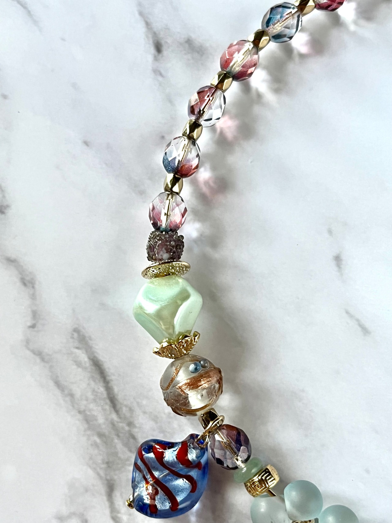 素材:チェコ硝子ビーズ、硝子風イラストアクリルチャーム、台湾仕入れランプビーズ、アクリルビーズなど