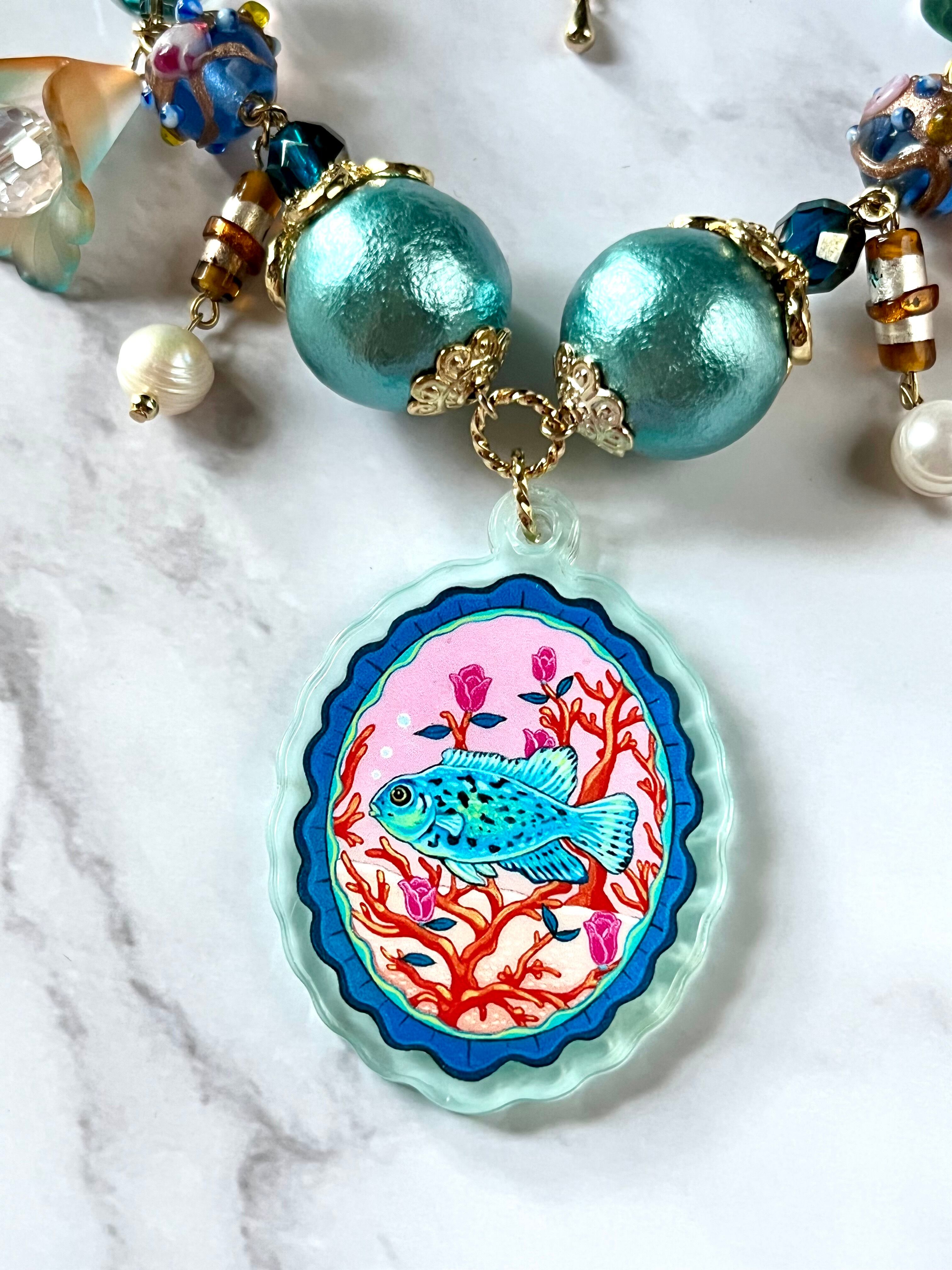 そんな架空の喫茶店をイメージしたアクセサリーシリーズ。異国や時を経てたどり着いたビンテージのパーツなどを使用した、エキゾチックで熱帯魚の様に輝く、ちょっぴりレトロなアクセサリーをお楽しみください。