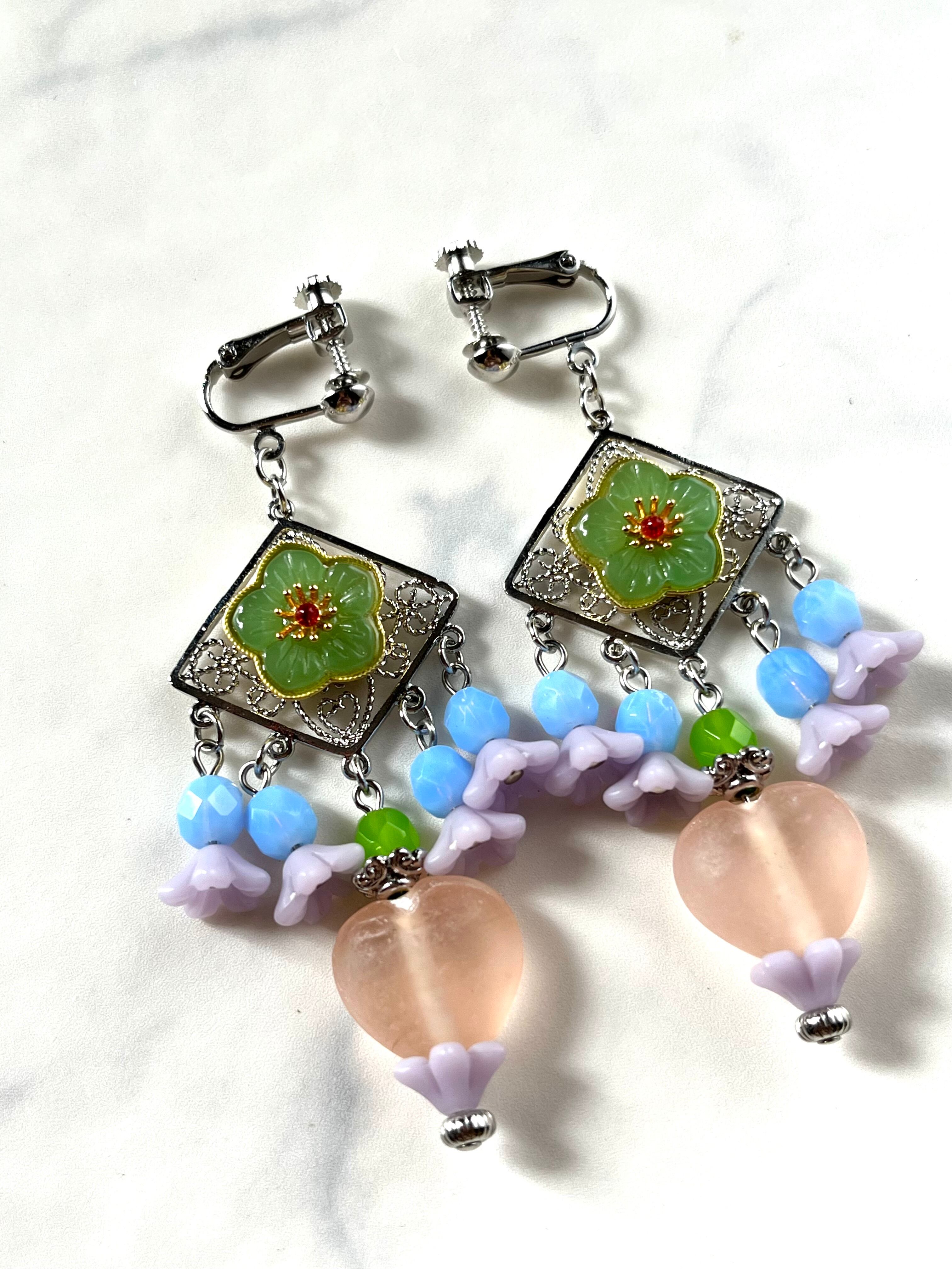 素材:チェコ硝子ビーズ、ドイツアクリルビーズ、キャストパーツなど