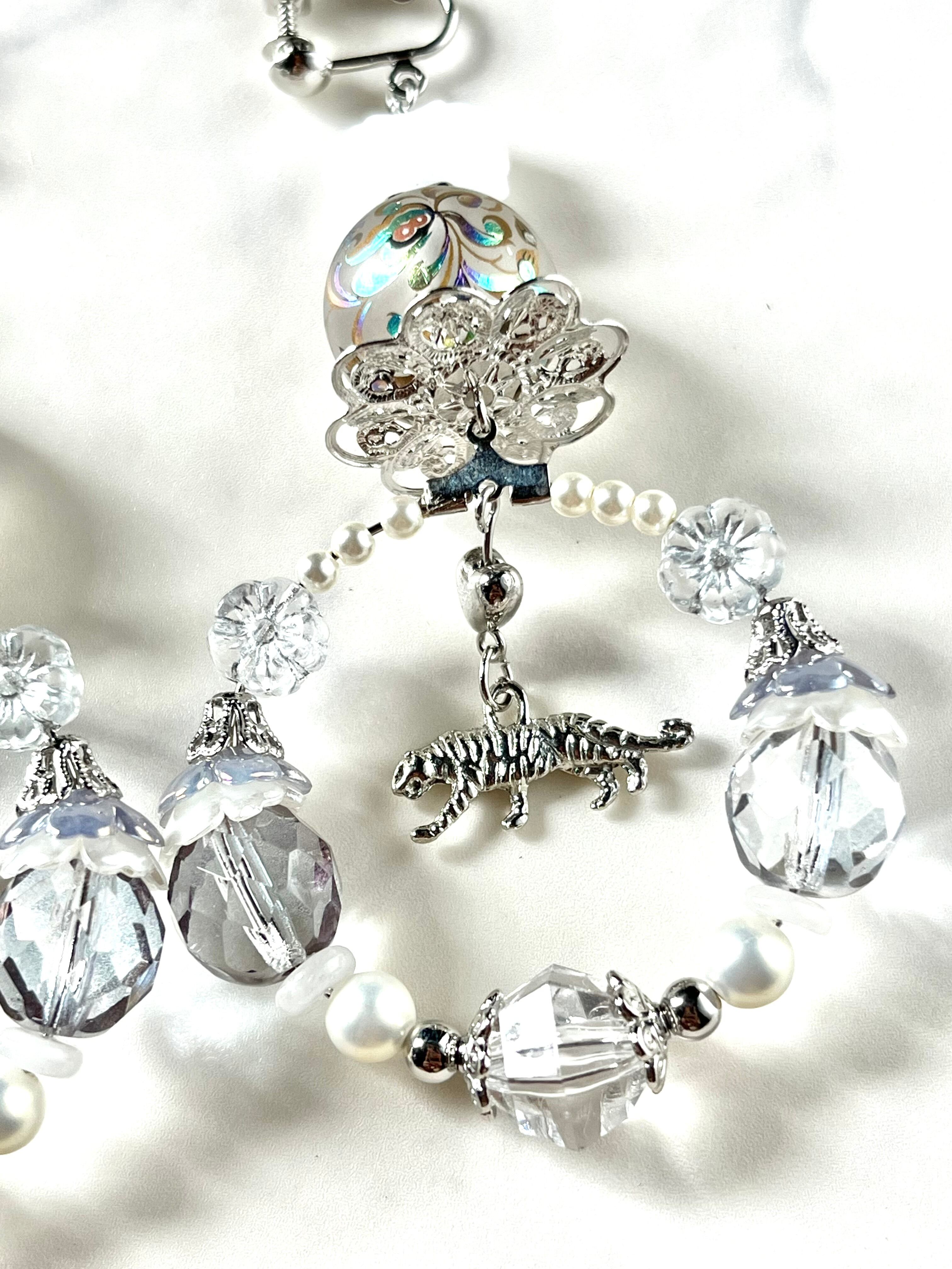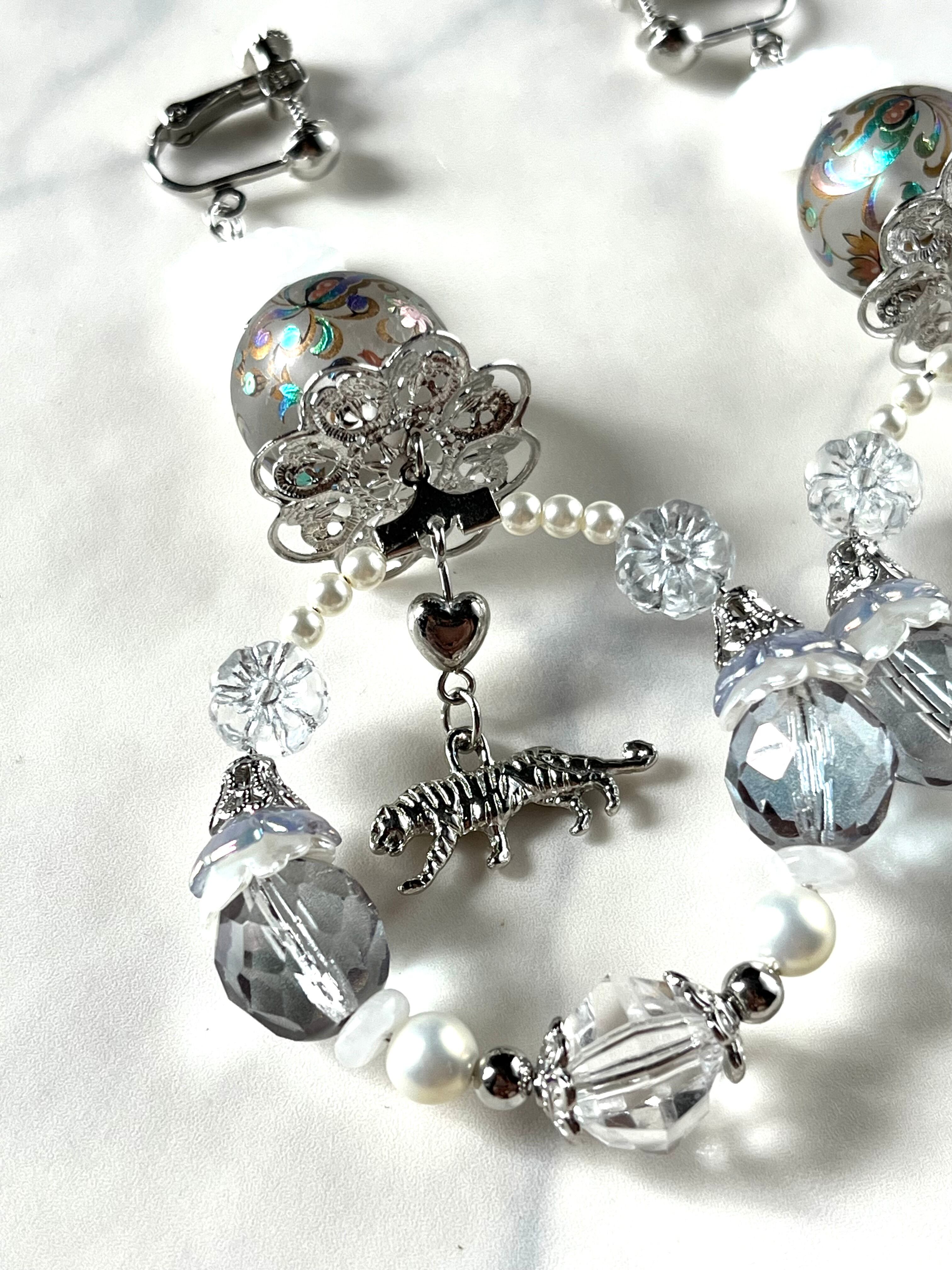 素材:チェコ硝子ビーズ、日本製アクリルビーズ、日本製転写ビーズ、キャストパーツなど