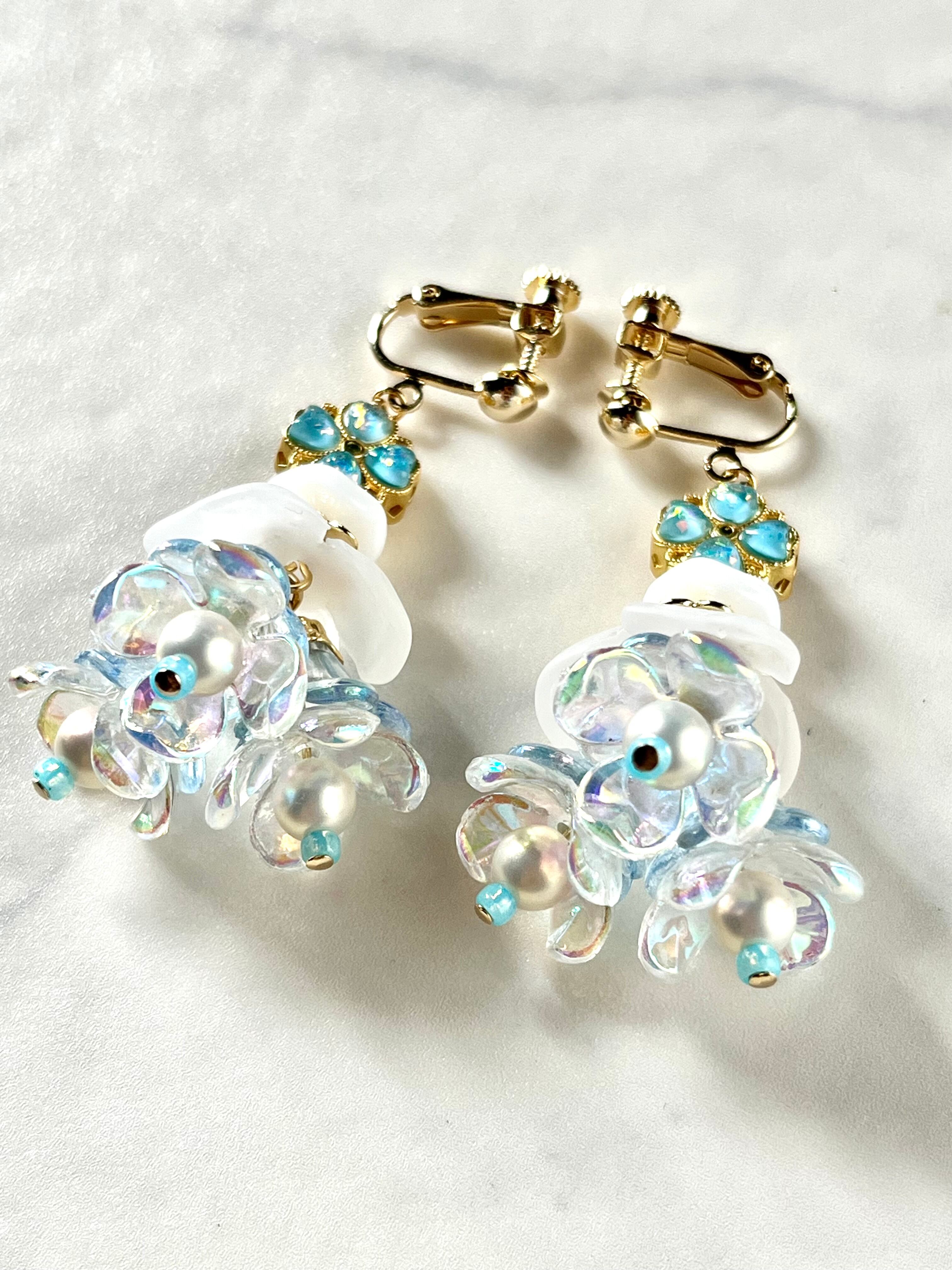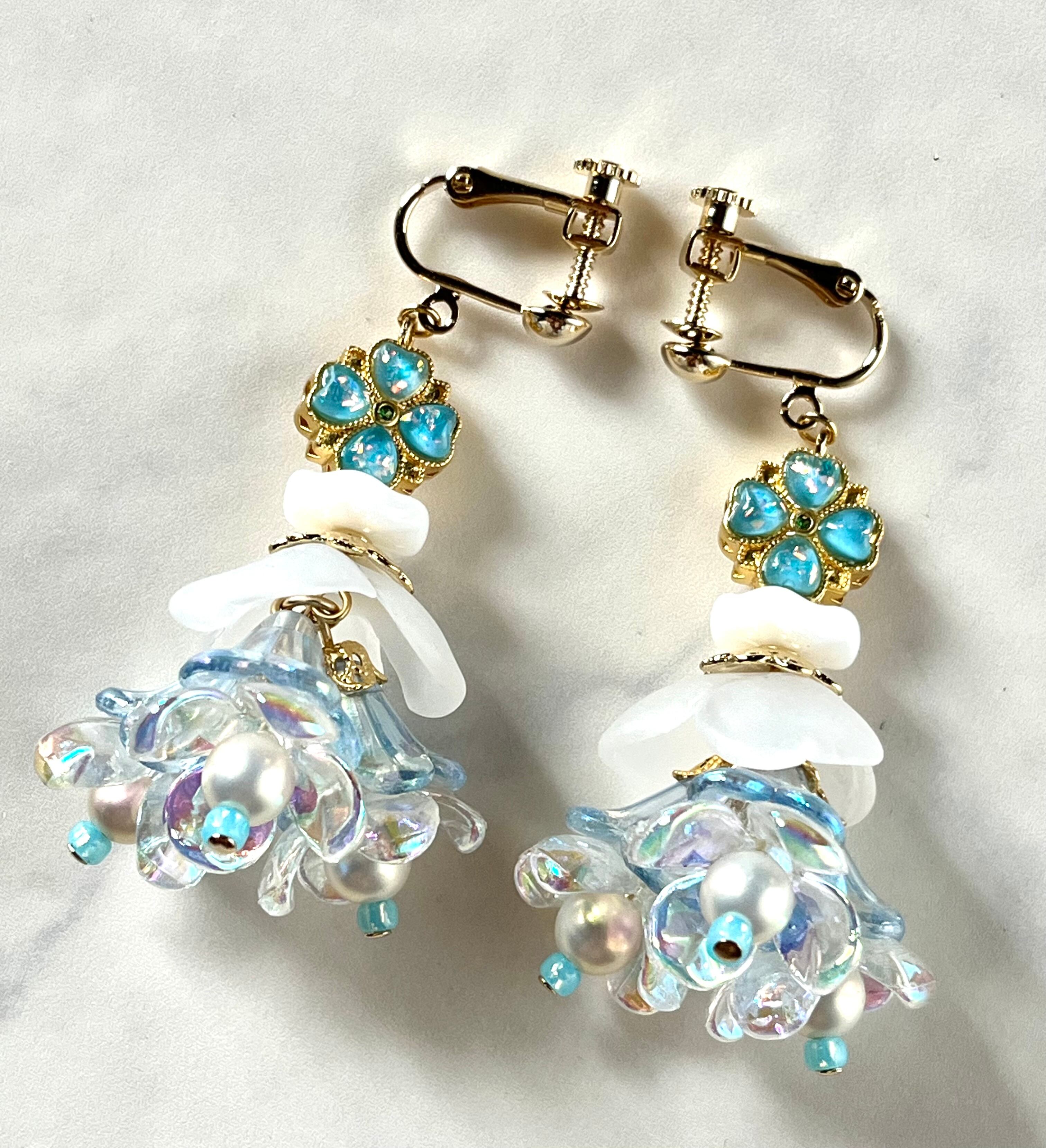 素材:チェコ硝子ビーズ、ドイツアクリルビーズ、キャストパーツなど