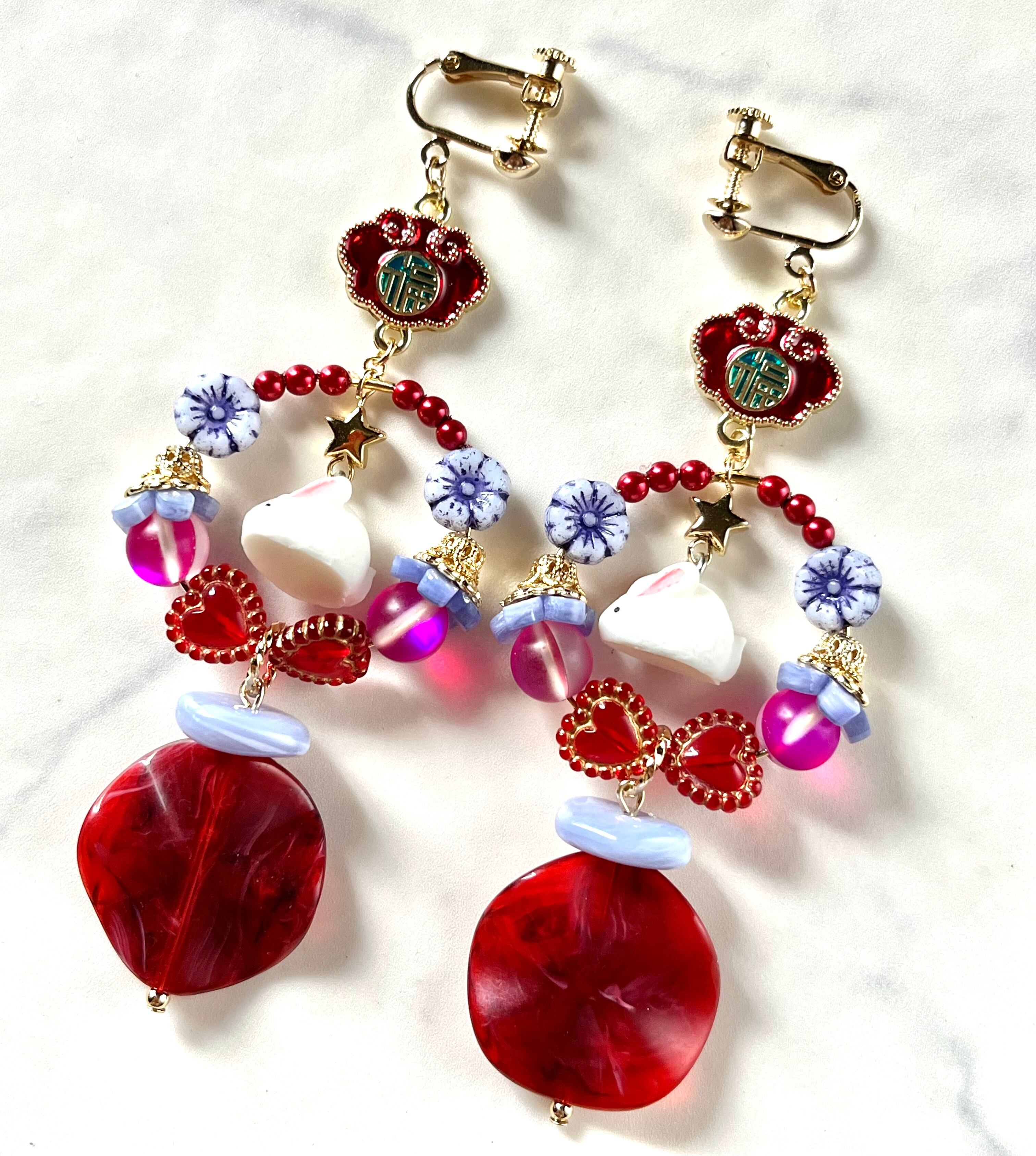 サイズ:長さ約8.6cm(イヤリング金具含まず)