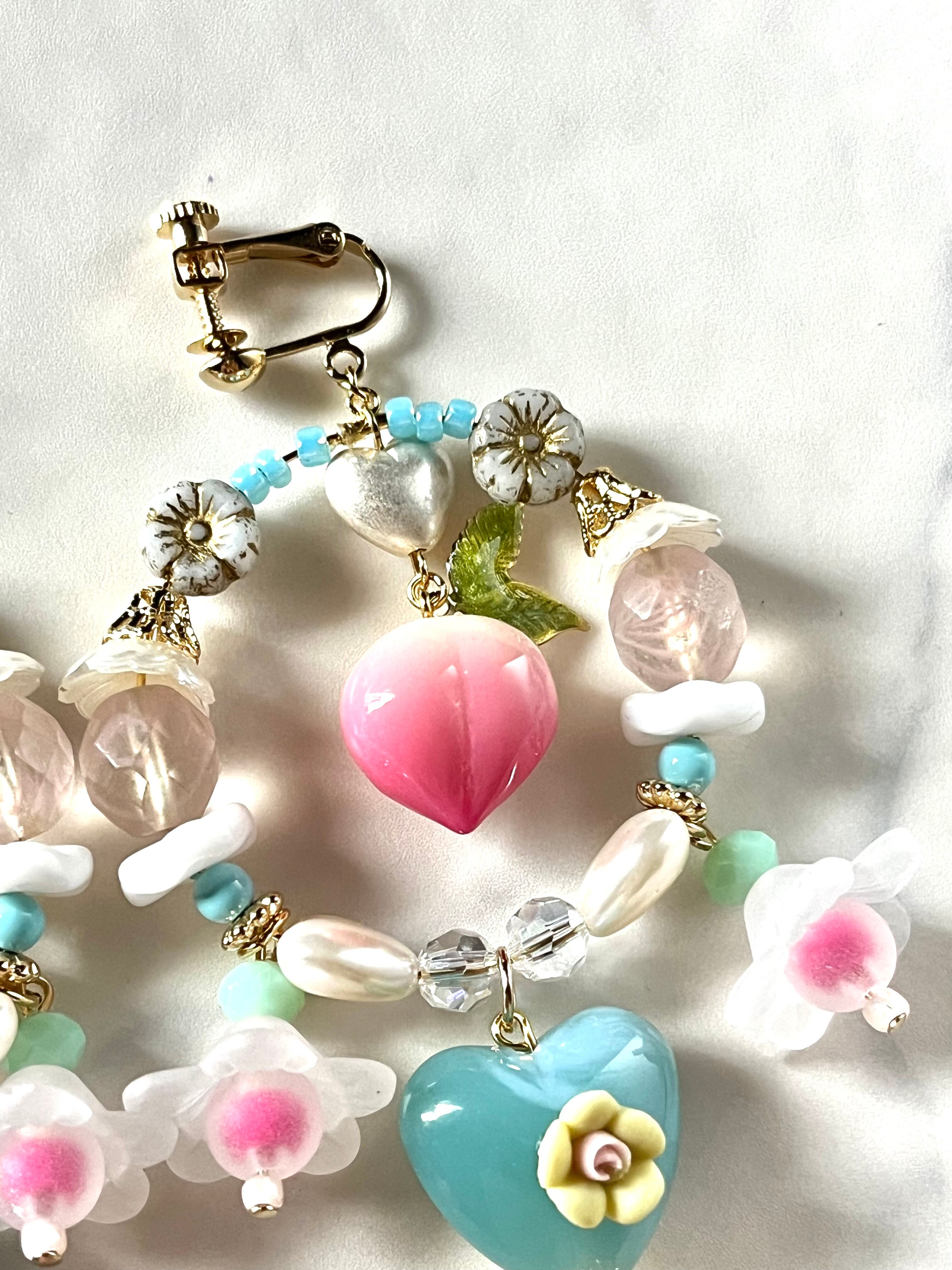 素材:チェコ硝子ビーズ、日本製アクリルビーズ、キャストパーツなど