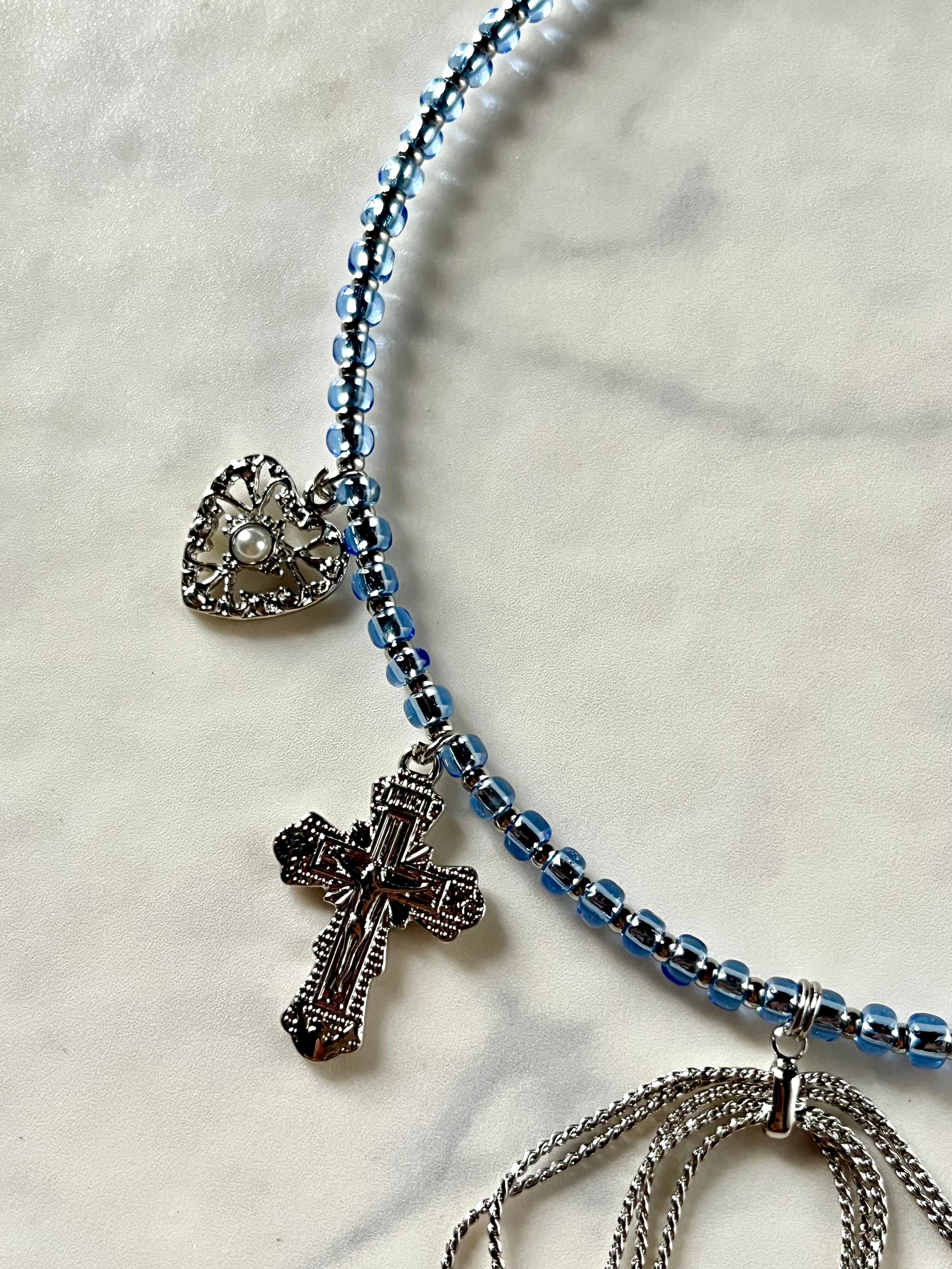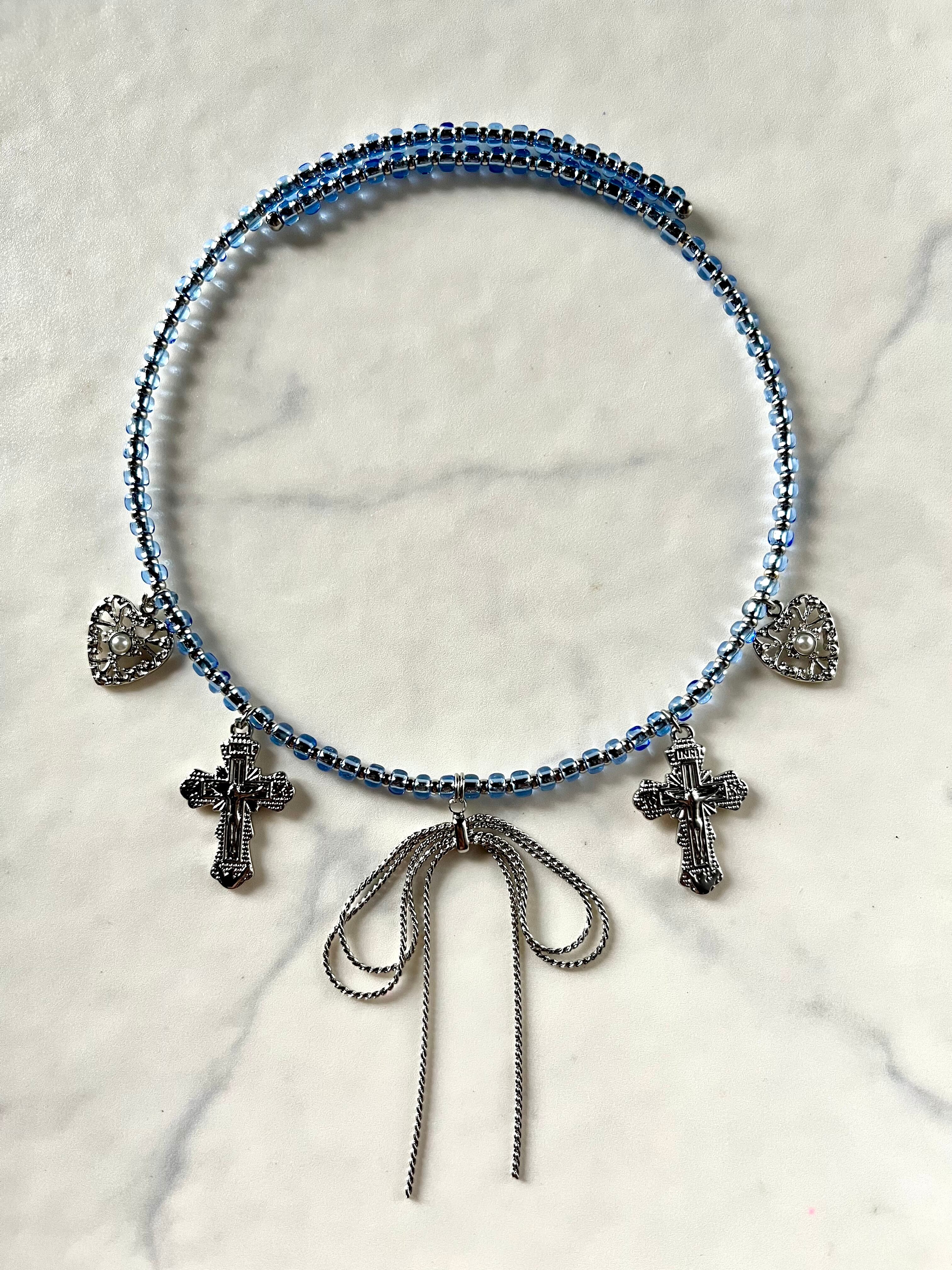 夏の空の下が似合うシルバー×水色のワイヤーチョーカー。