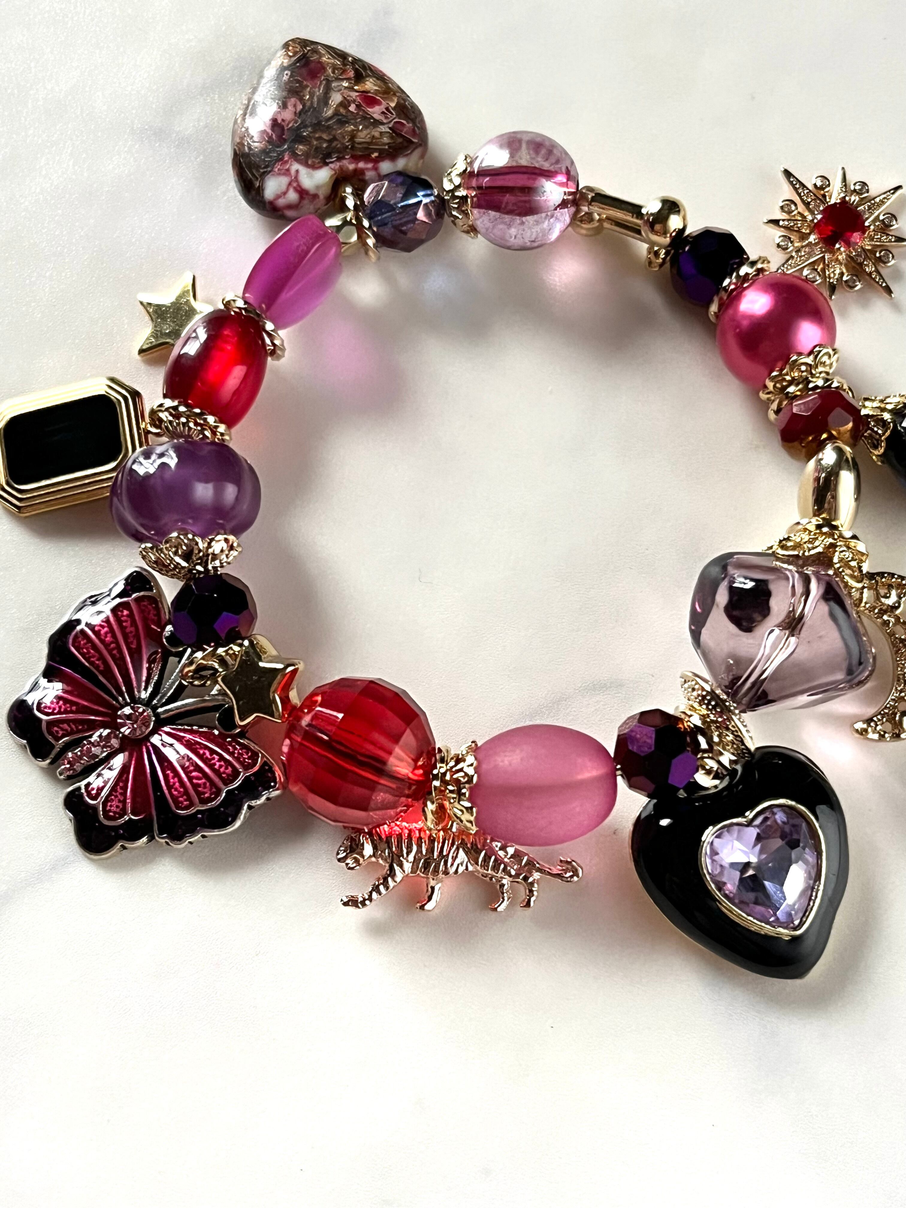 こちらのブレスレットシリーズはおまじないをイメージしたチャーム達を、贅沢に飾りつけたデザイン。全て一点ものとなっております。