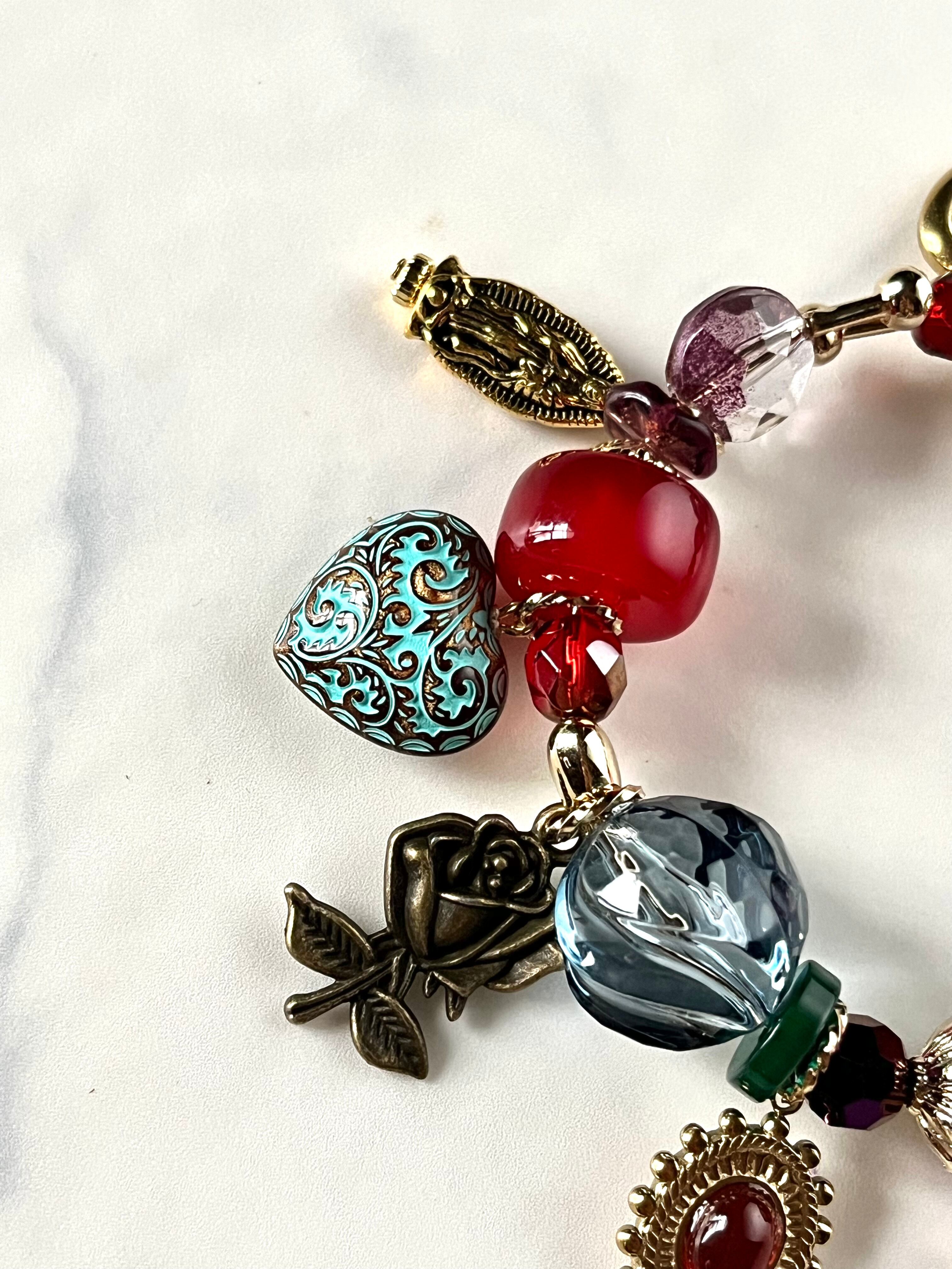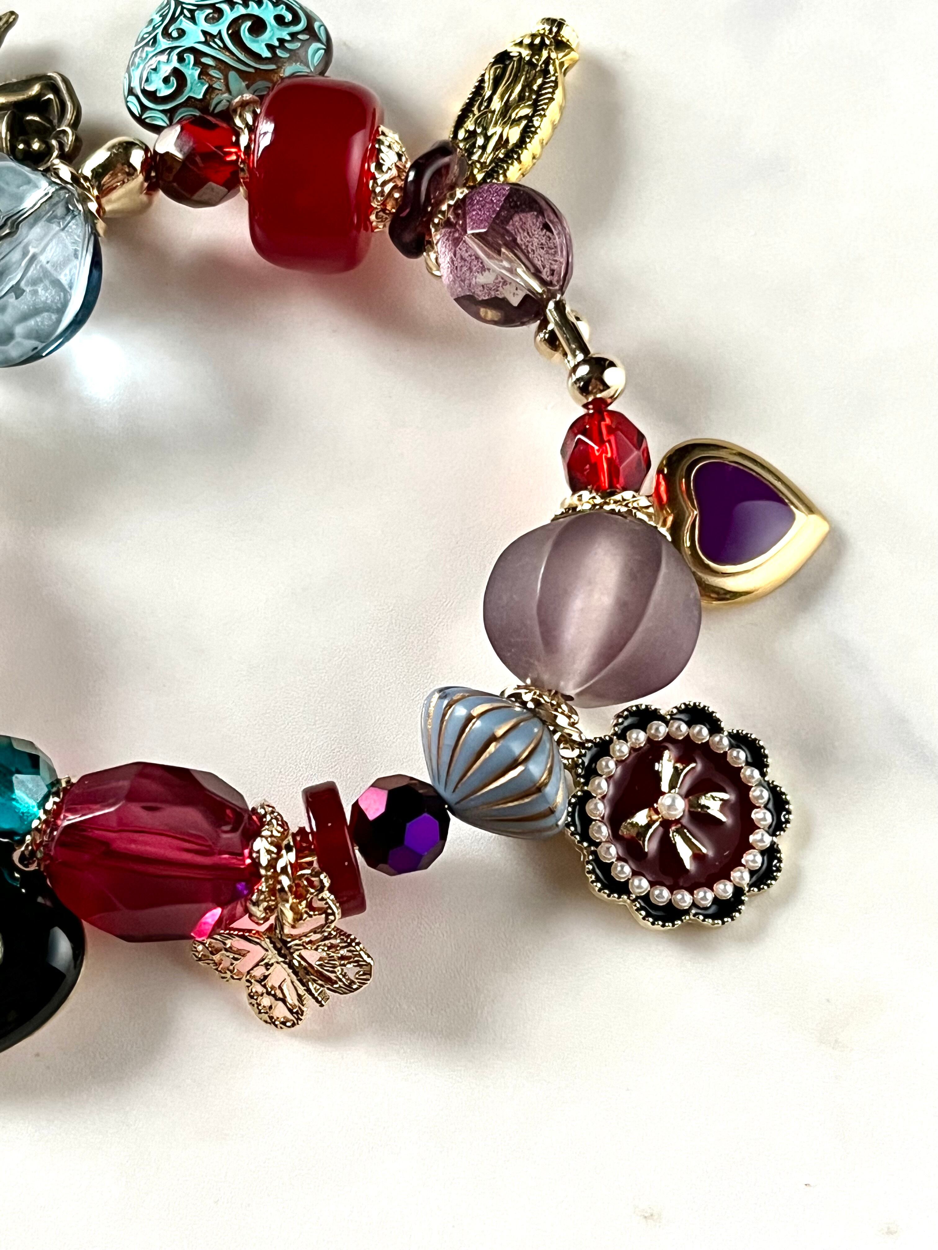 こちらのブレスレットシリーズはおまじないをイメージしたチャーム達を、贅沢に飾りつけたデザイン。全て一点ものとなっております。