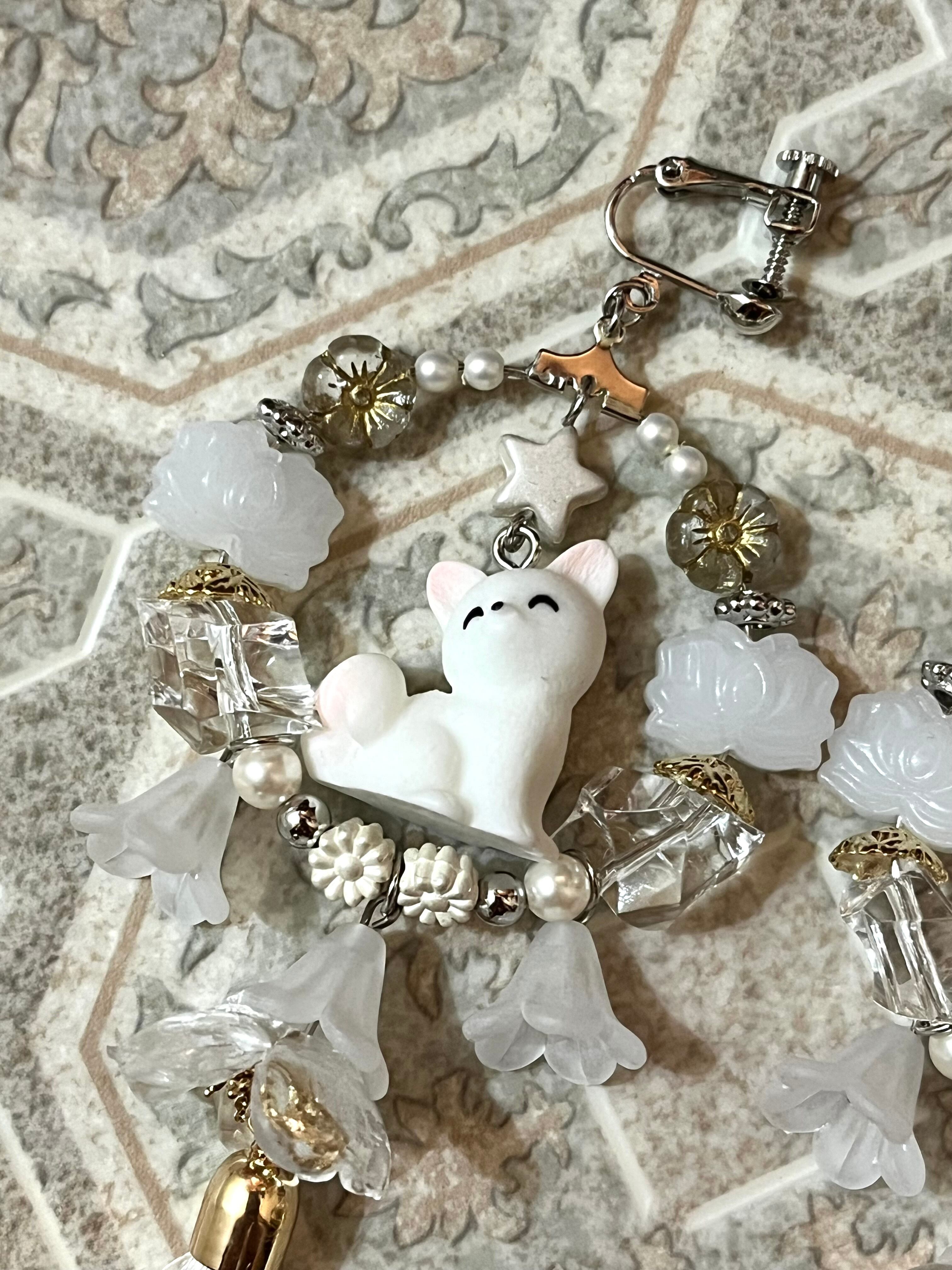 素材:チェコ硝子ビーズ、プラスチックビーズ、キャストパーツ、ドイツ製アクリルビーズなど
