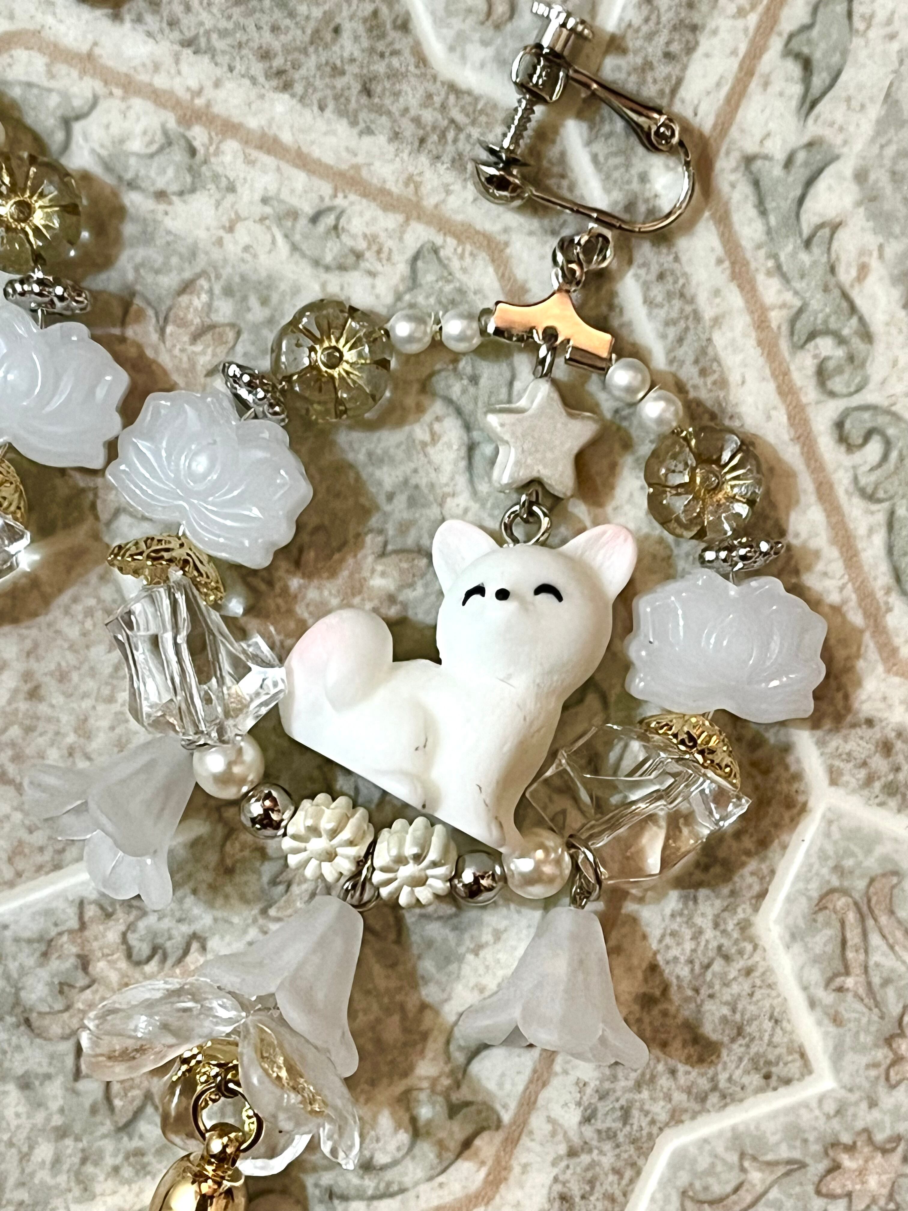 こちらはシルバーベースにゴールドが入った白狐チャームデザインです。