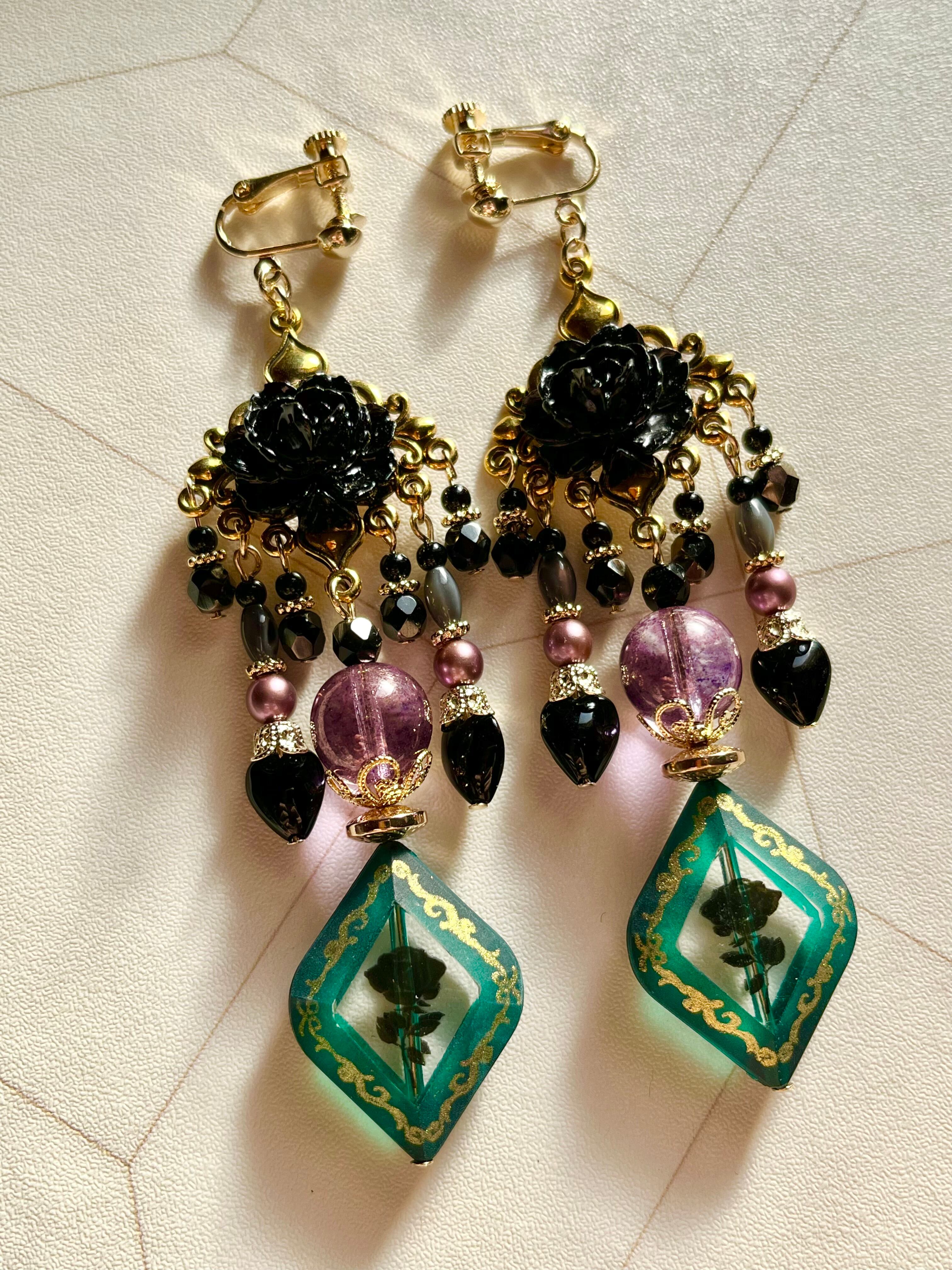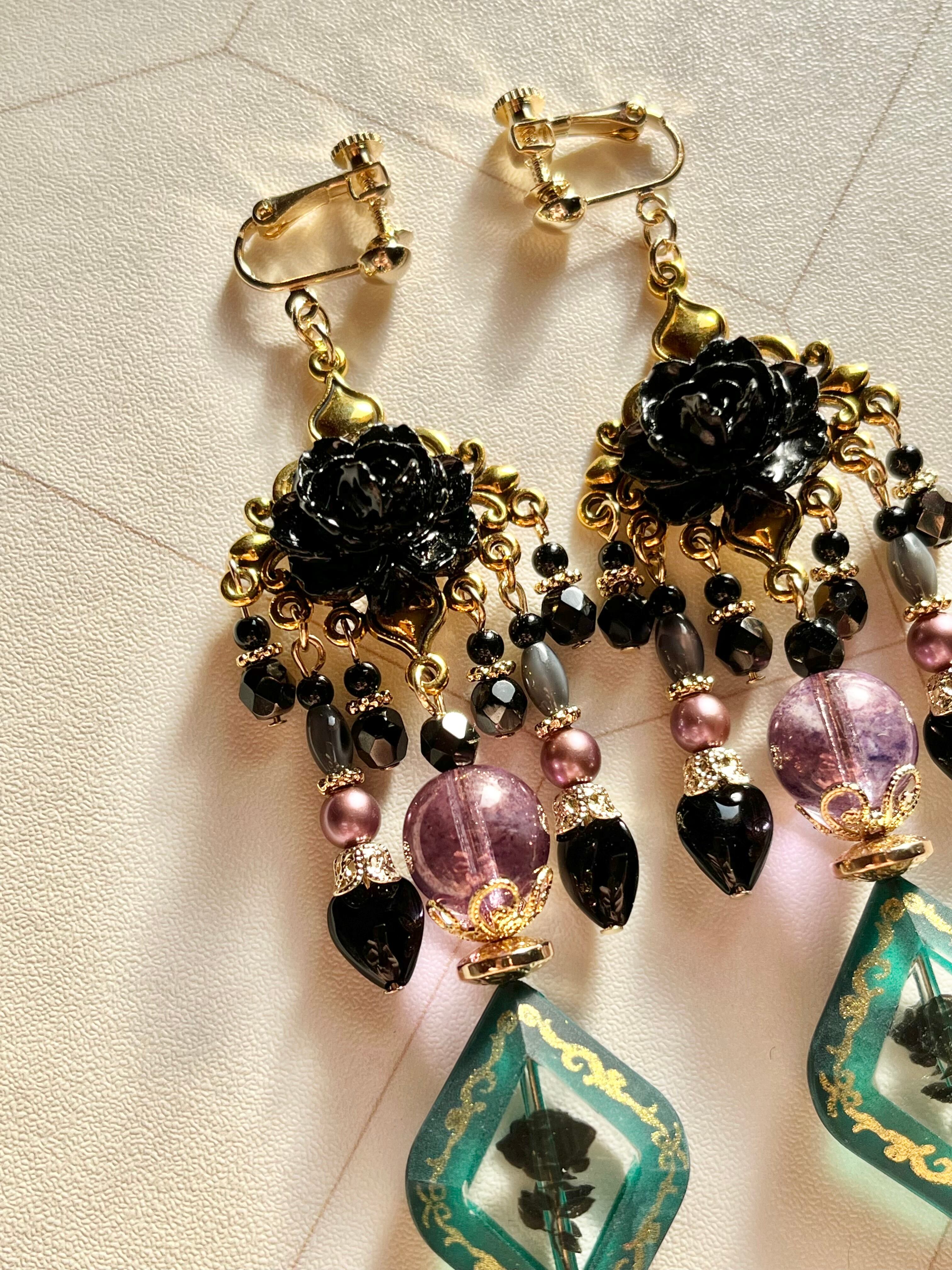 素材:チェコ硝子ビーズ、キャストパーツ、ドイツアクリルビーズなど