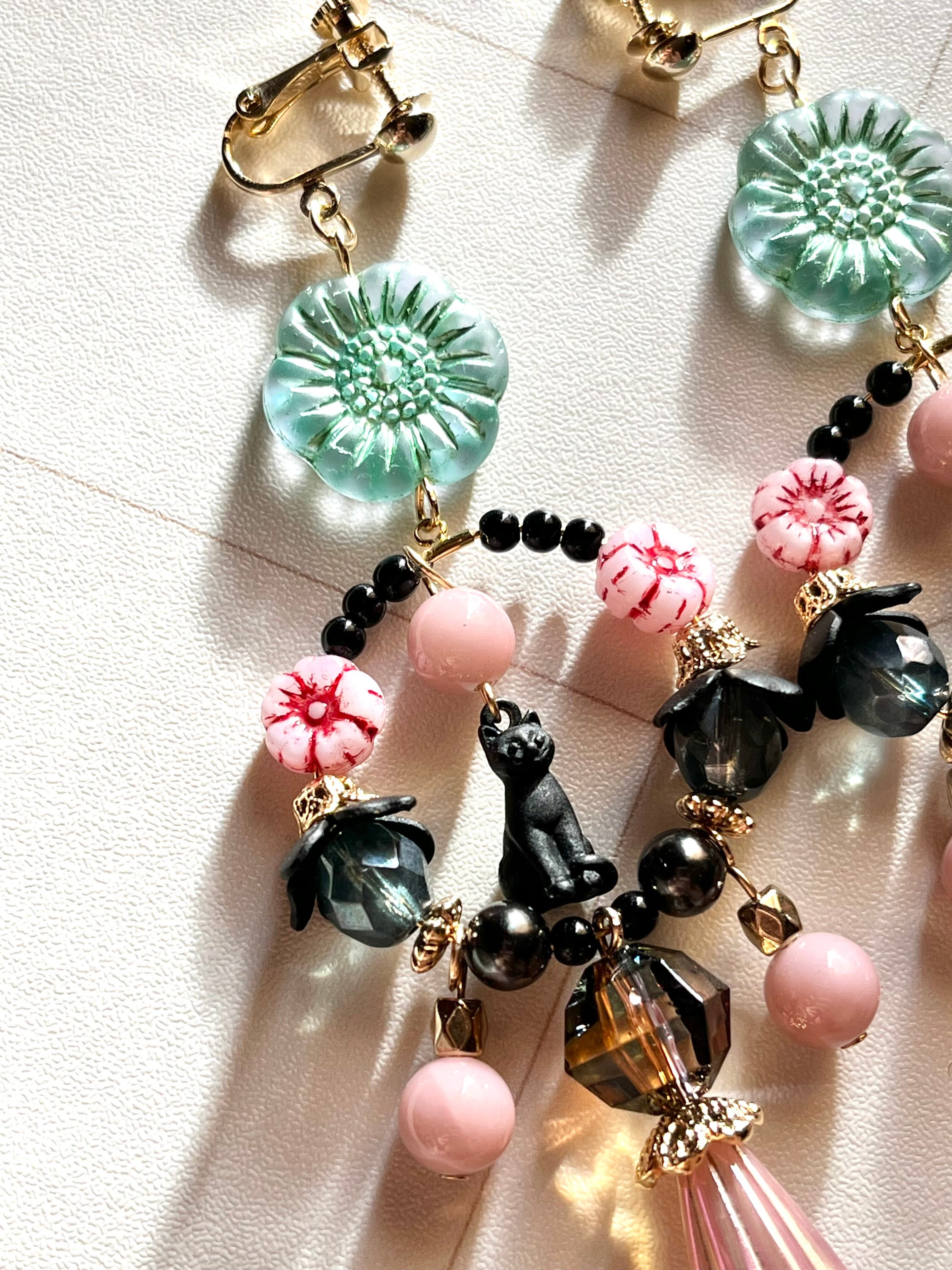 素材:チェコ硝子ビーズ、キャストパーツ、日本製アクリルビーズなど