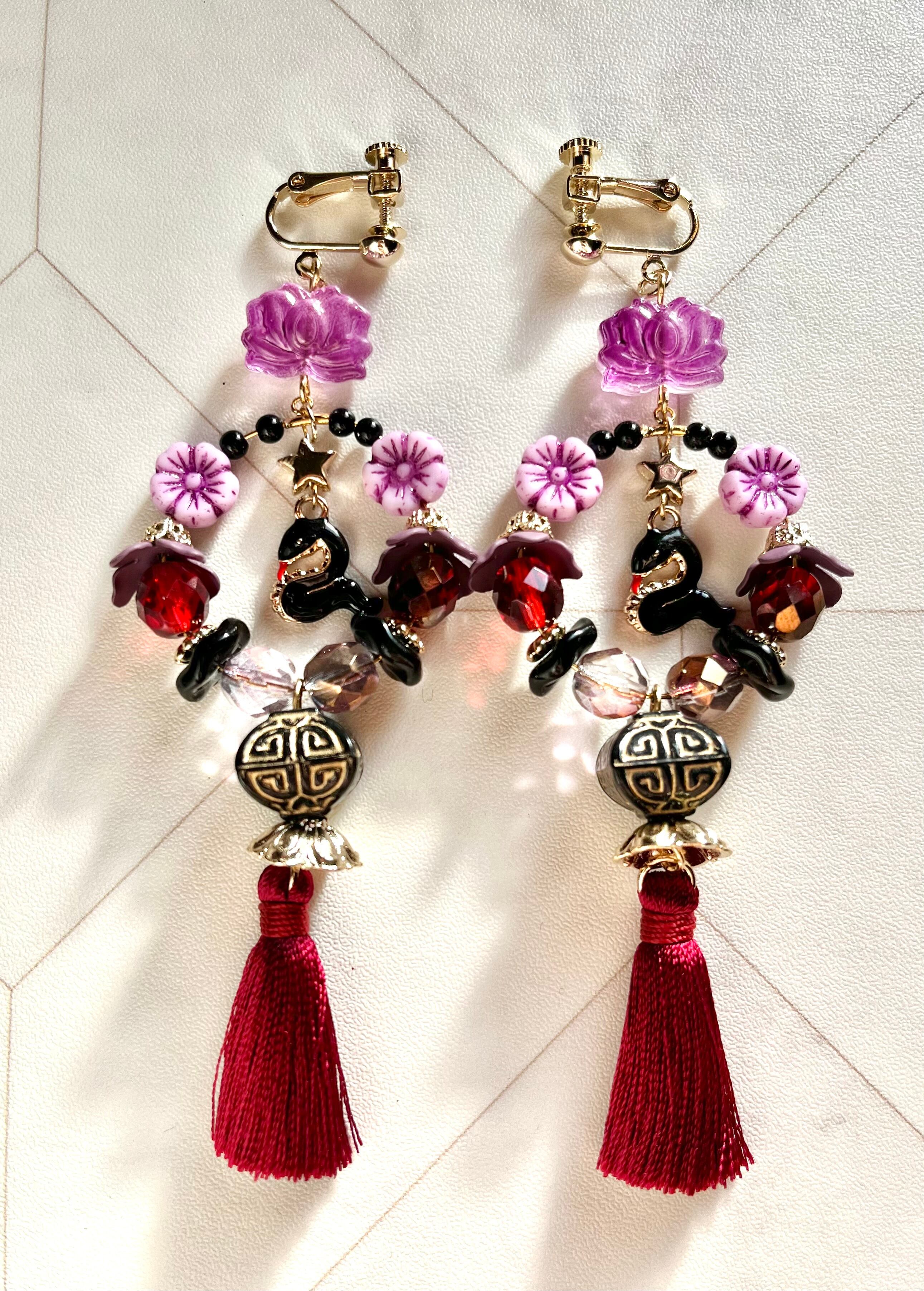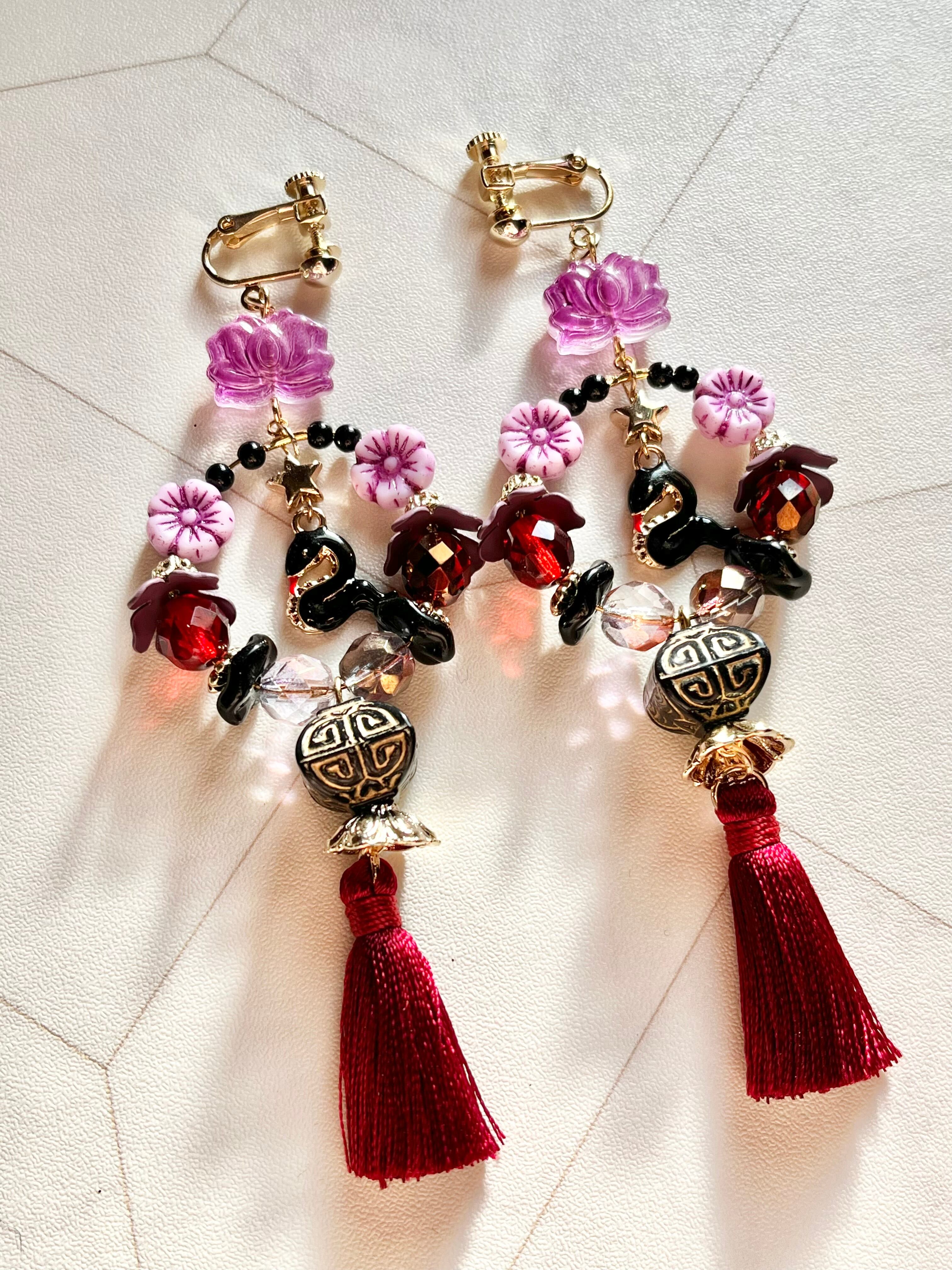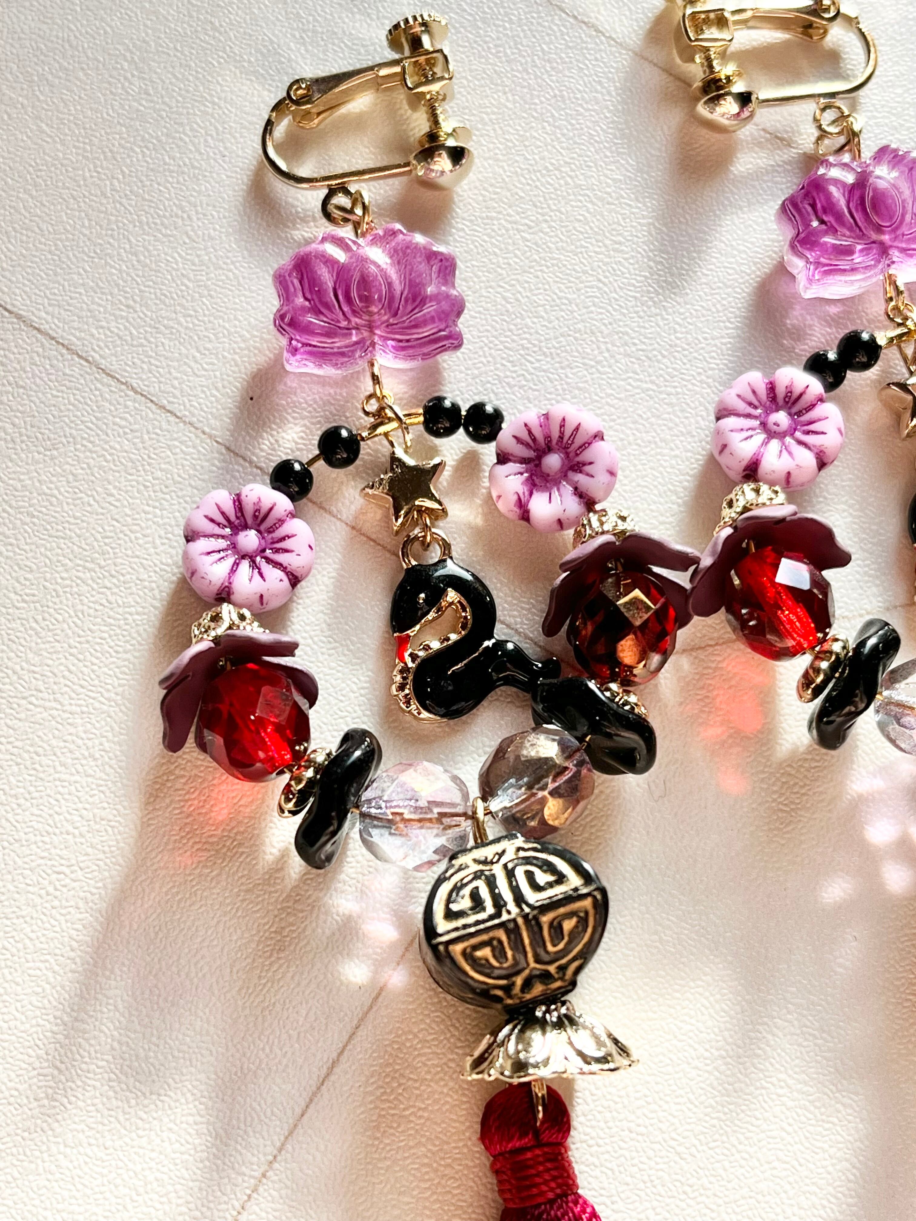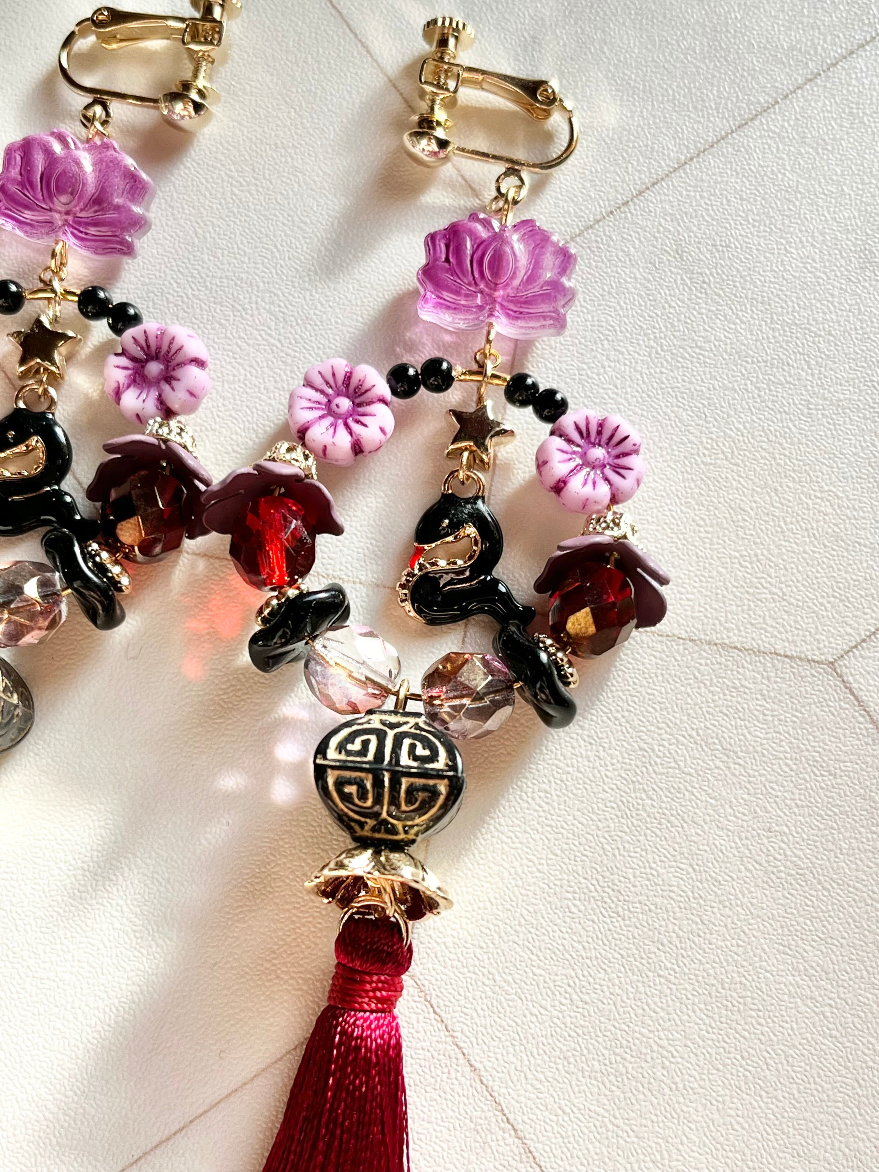素材:チェコ硝子ビーズ、キャストパーツ、日本製タッセルなど