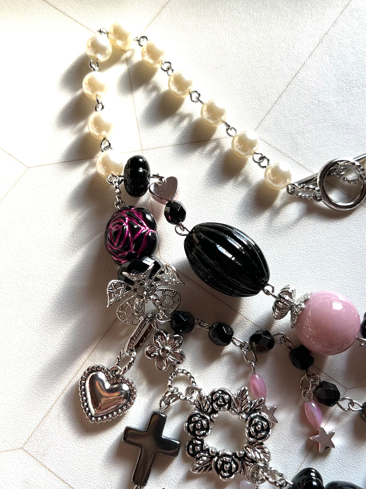 素材:チェコ硝子ビーズ、キャストパーツ、ドイツ製アクリルビーズ、プラビーズ、ガラスパールなど