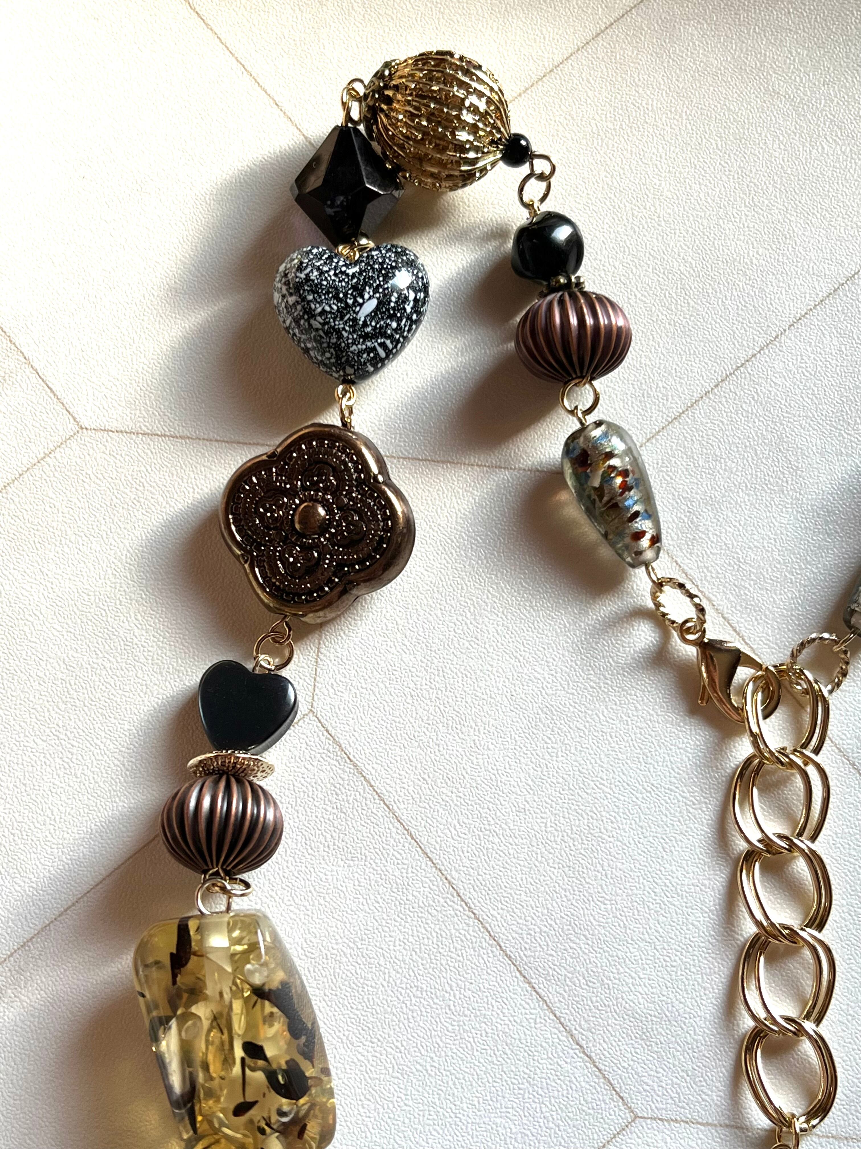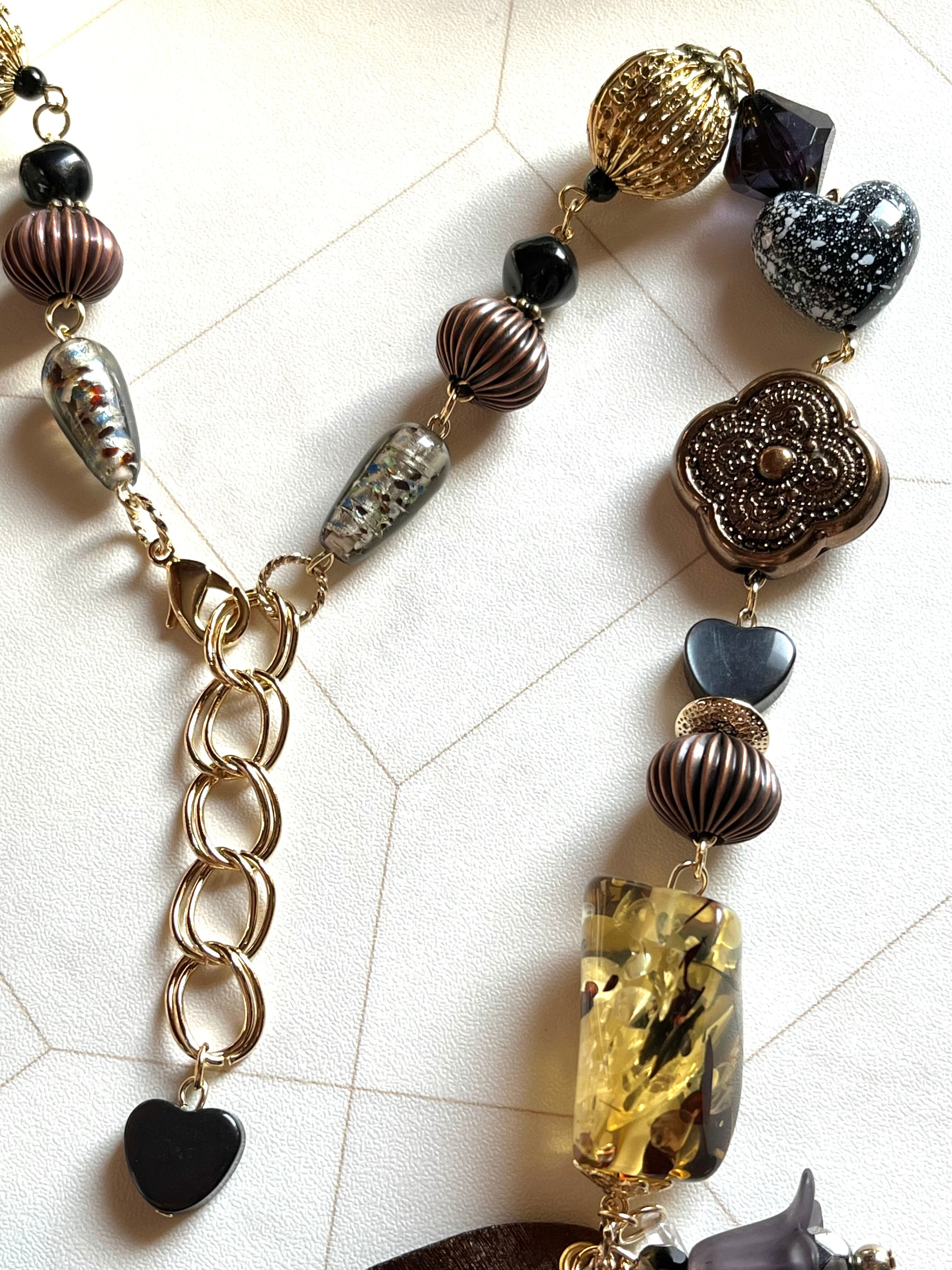 素材:チェコ硝子ビーズ、キャストパーツ、本革、押し花、台湾仕入れビーズなど