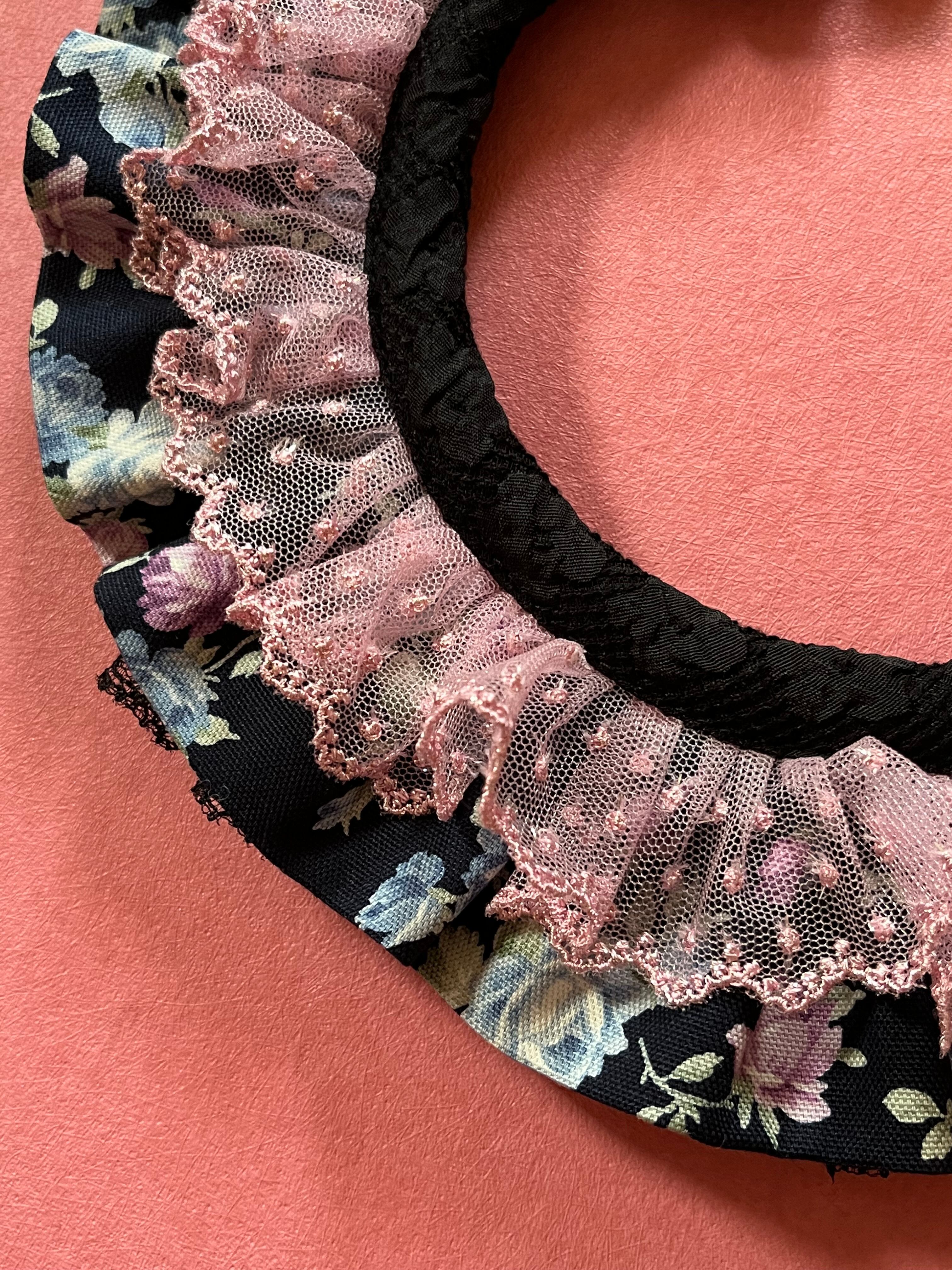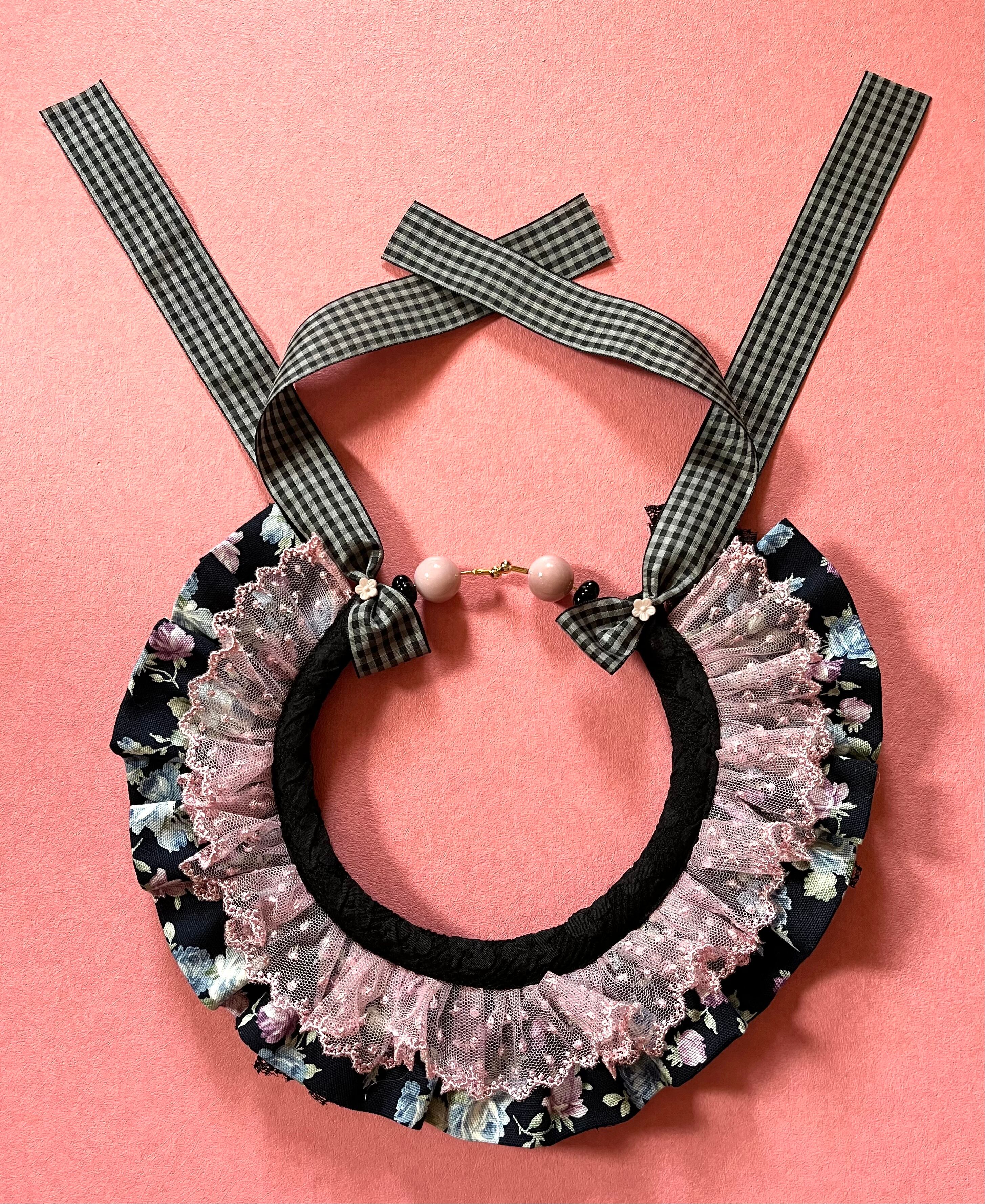 こちらは着用するとフリルのつけ襟をつけたようなデザインになるフープネックレスです。