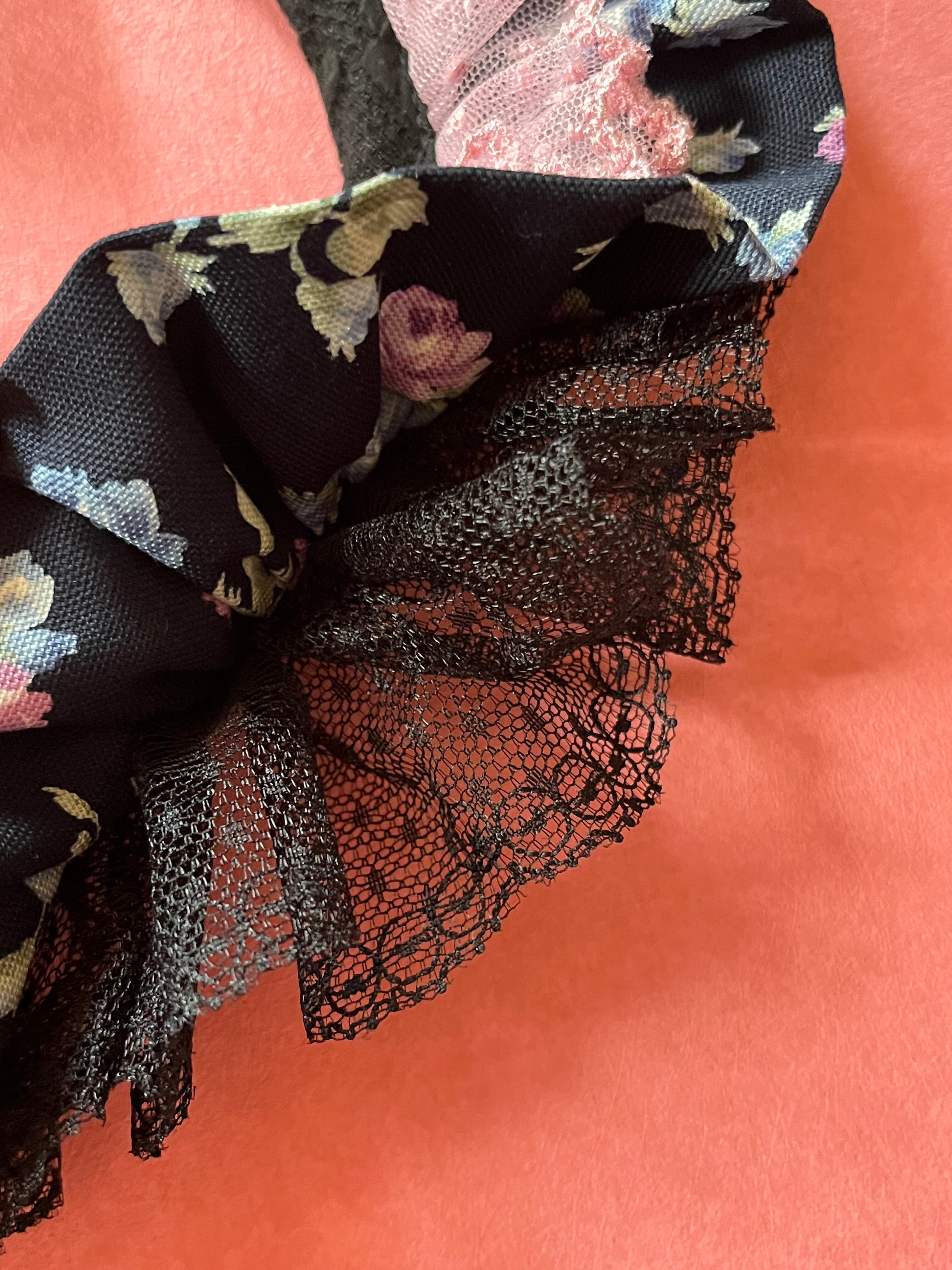 素材:綿プリント生地、ラメチュールレース、ラッセルレースなど