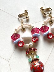 素材:チェコ硝子ビーズ、キャストパーツ、プラパール、日本製転写ビーズなど