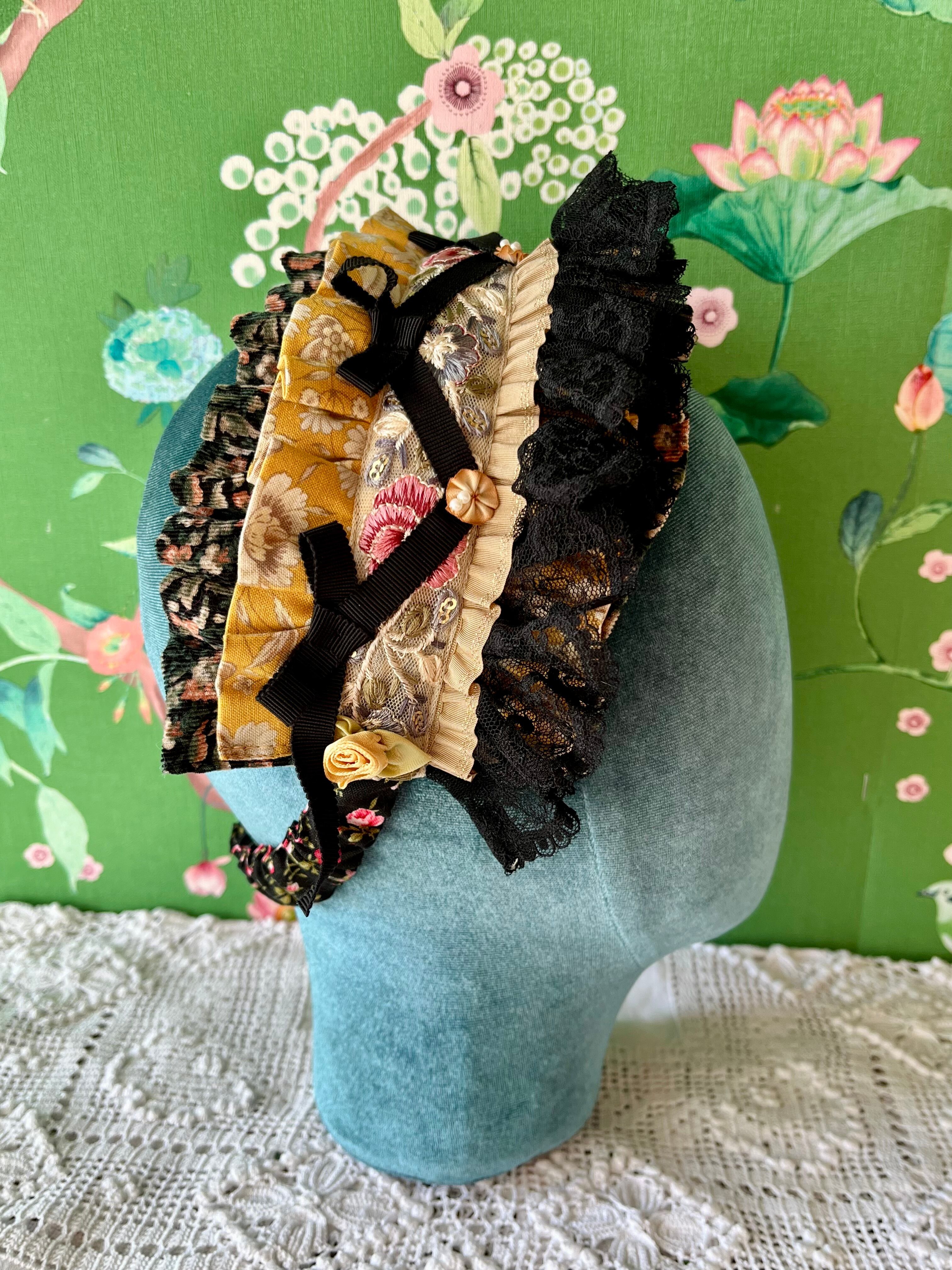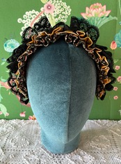 ヴィクトリアン朝をイメージしたblack×yellowのコンパクトにぎゅっと詰め込んだ装飾が可愛いヘアバンドとなっています。