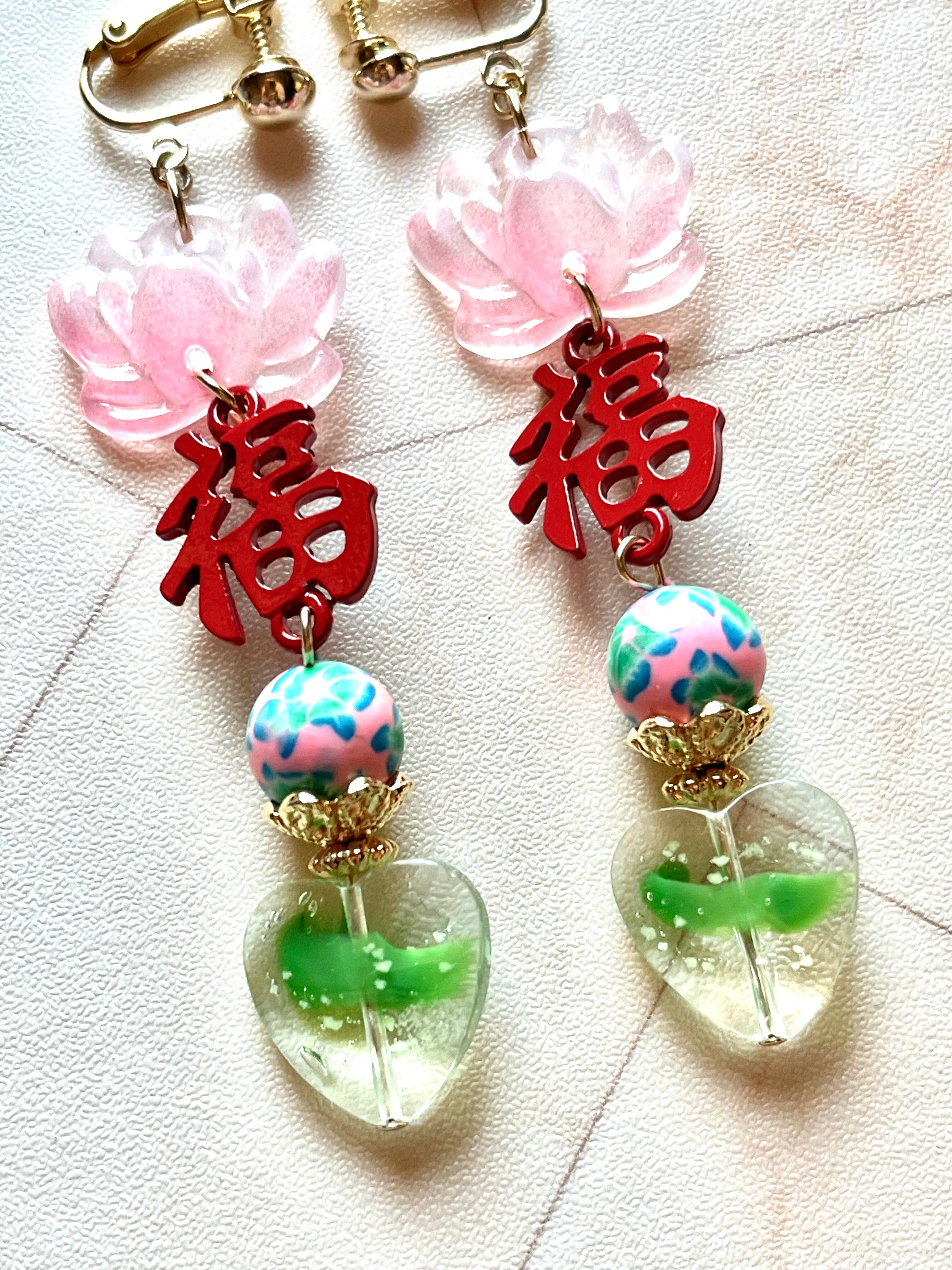 素材:キャストパーツ、クレイビーズ、台湾製ガラスビーズなど