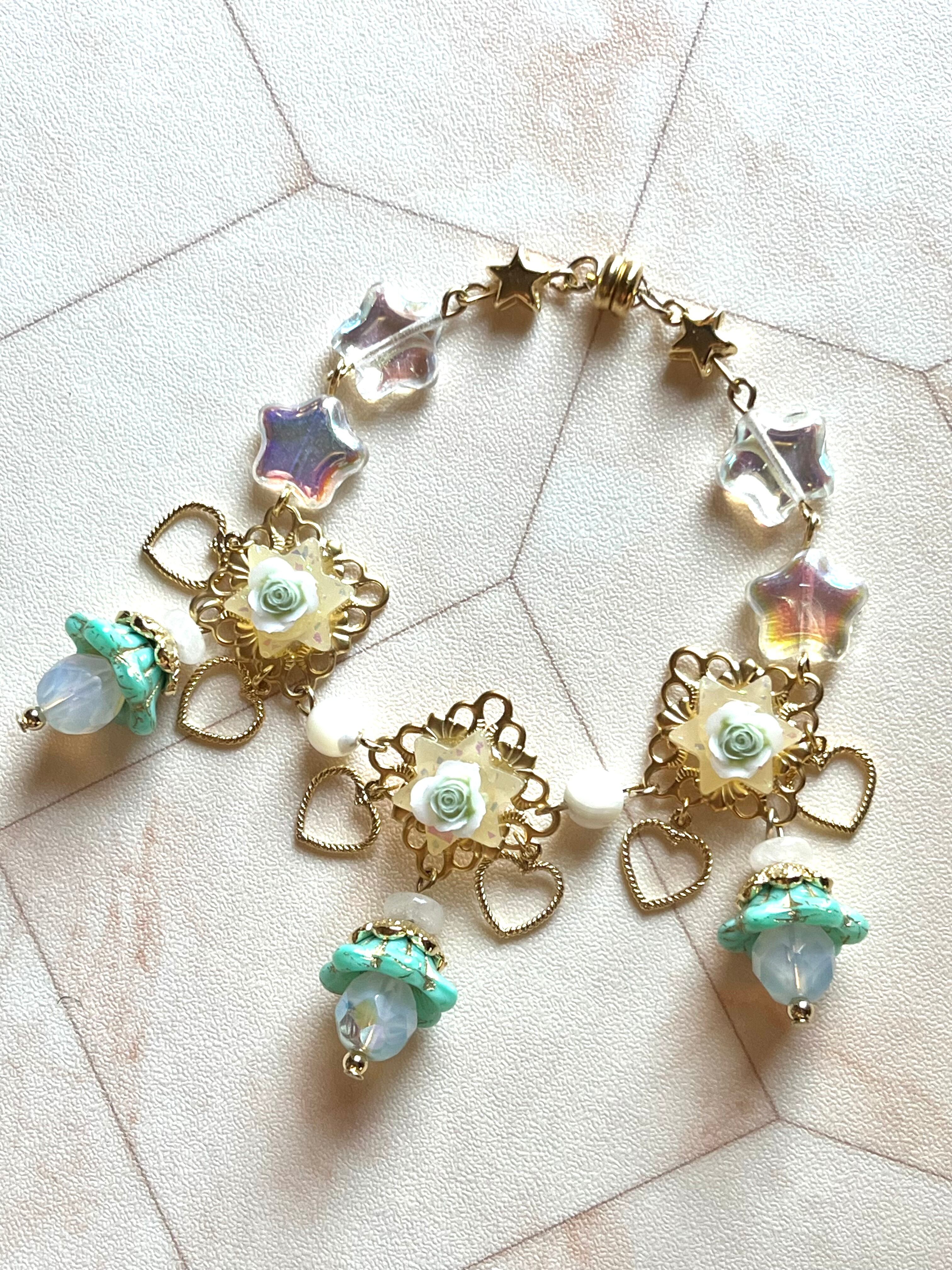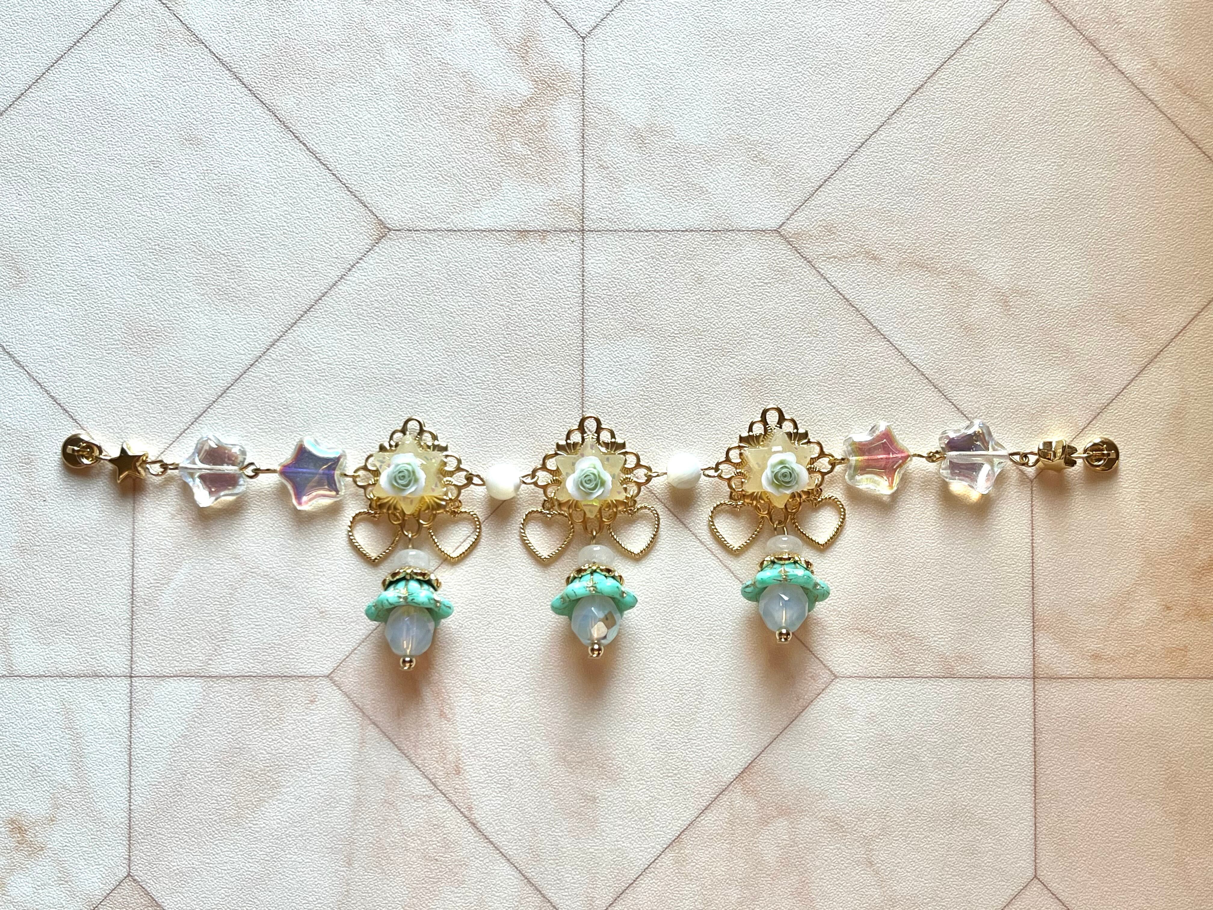 素材:チェコ硝子ビーズ、キャストパーツ、クレイビーズなど