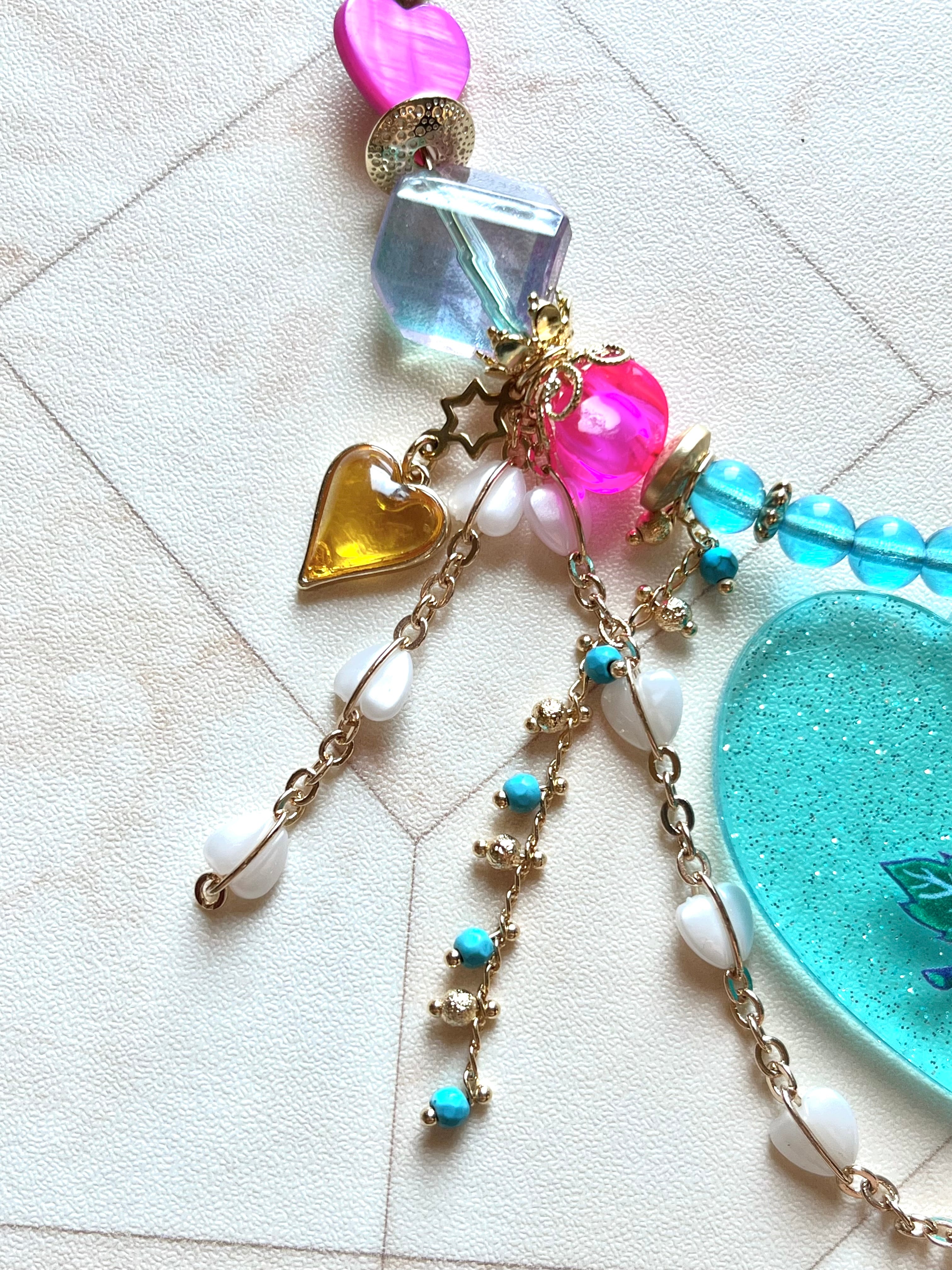 楽園をイメージした華やかでカラフルなデザインのアクセサリーです。