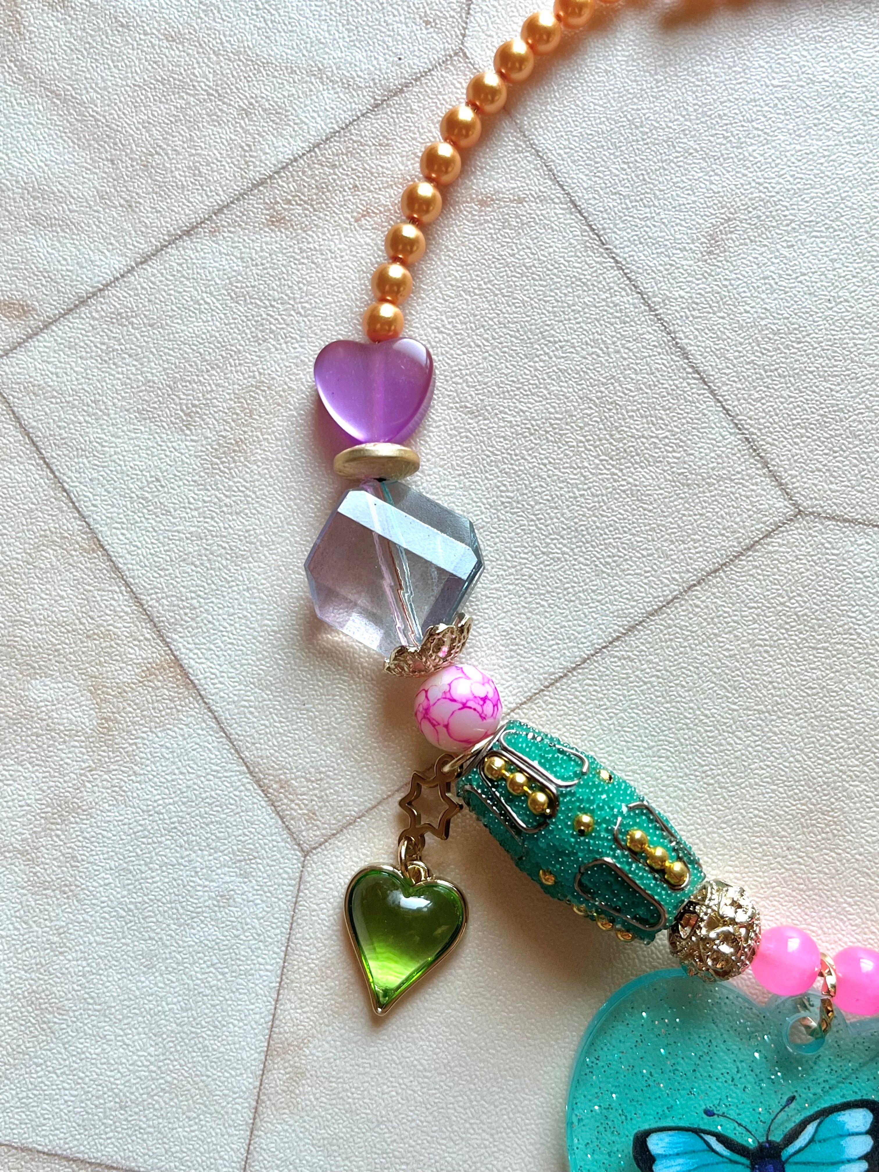楽園をイメージした華やかでカラフルなデザインのアクセサリーです。