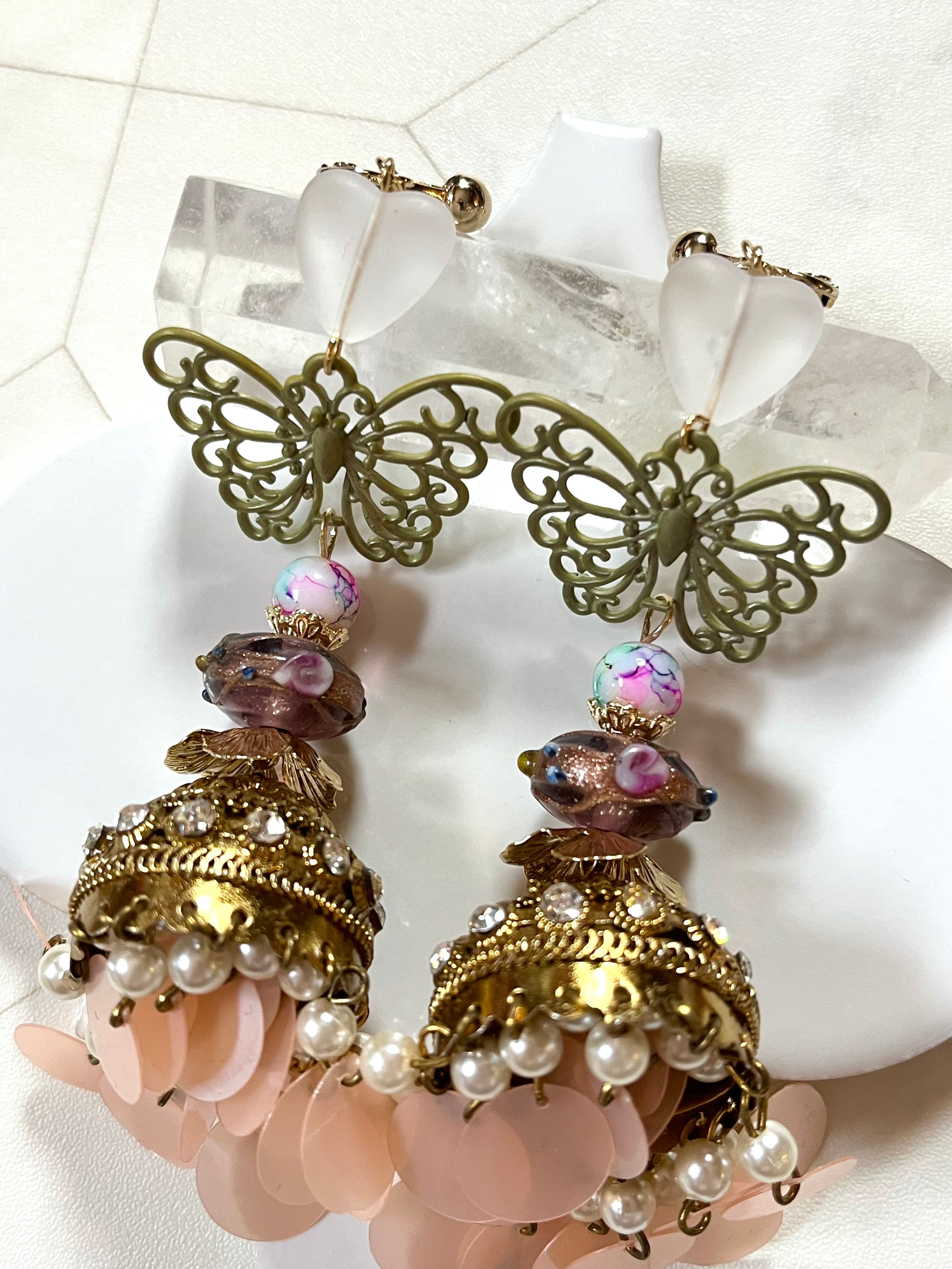 素材:インドビジュータッセル、ハンドメイドランプビーズ、キャストパーツなど