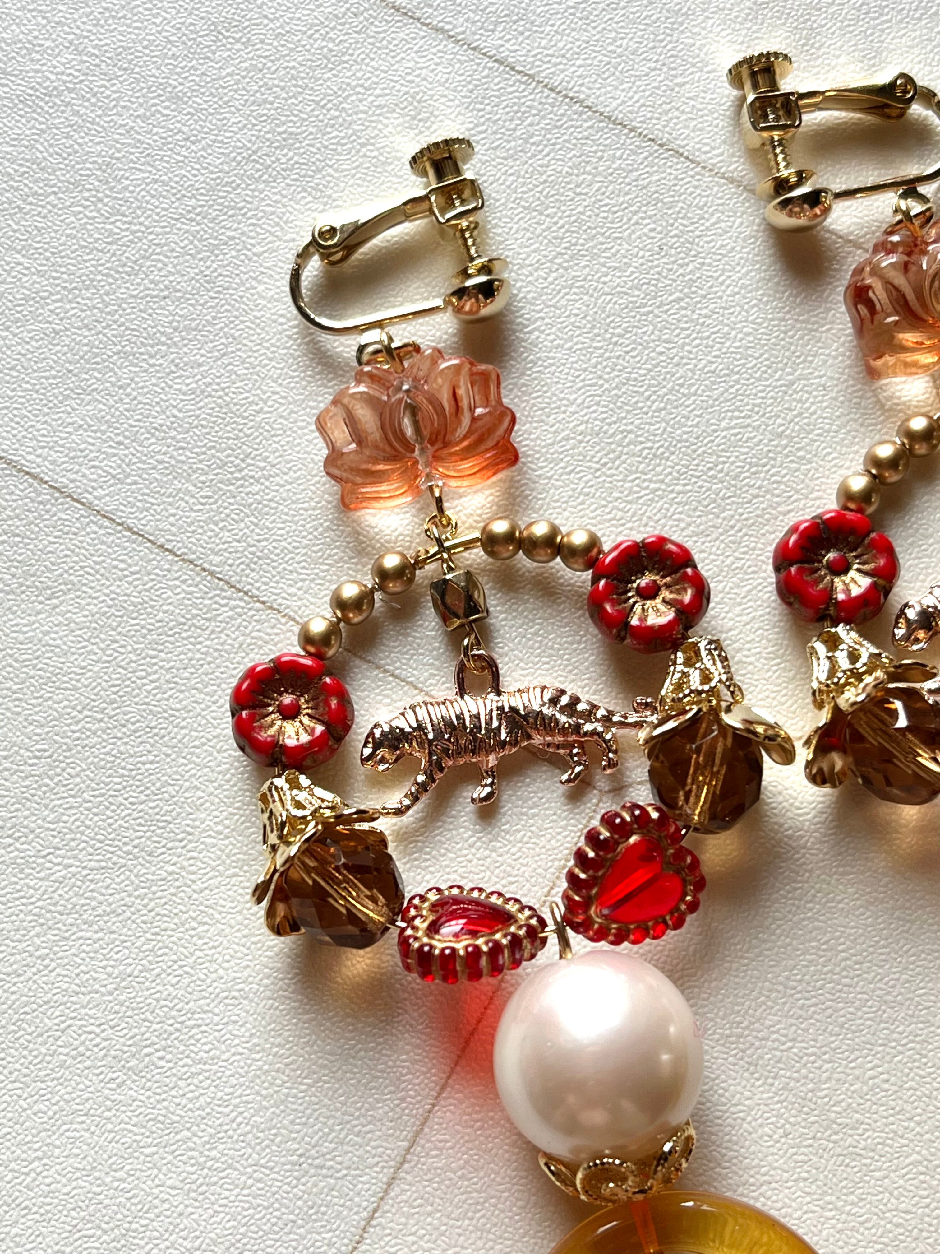 素材:チェコガラスビーズ、キャストパーツ、ビンテージアクリルビーズ、ドイツ製アクリルビーズなど
