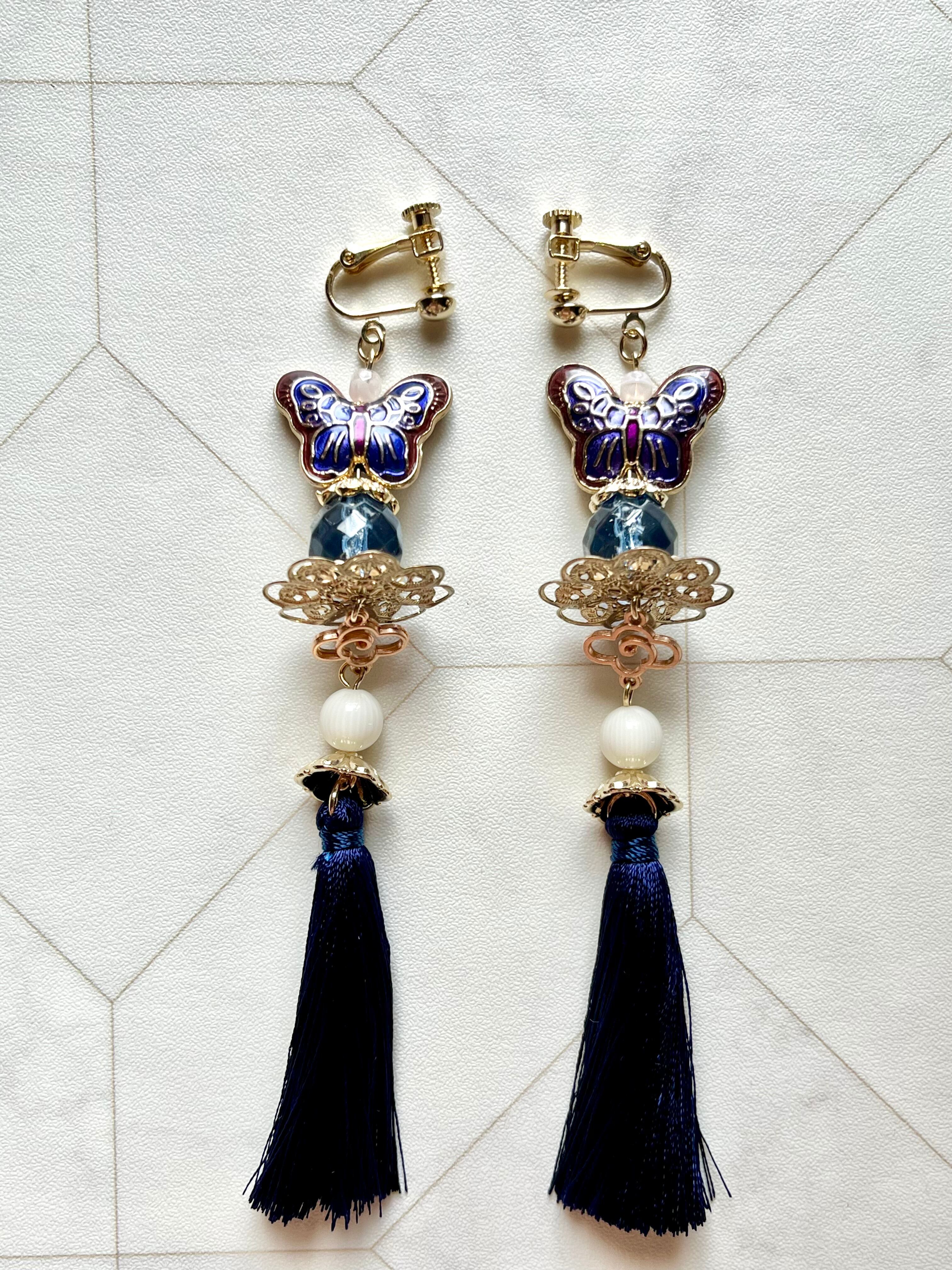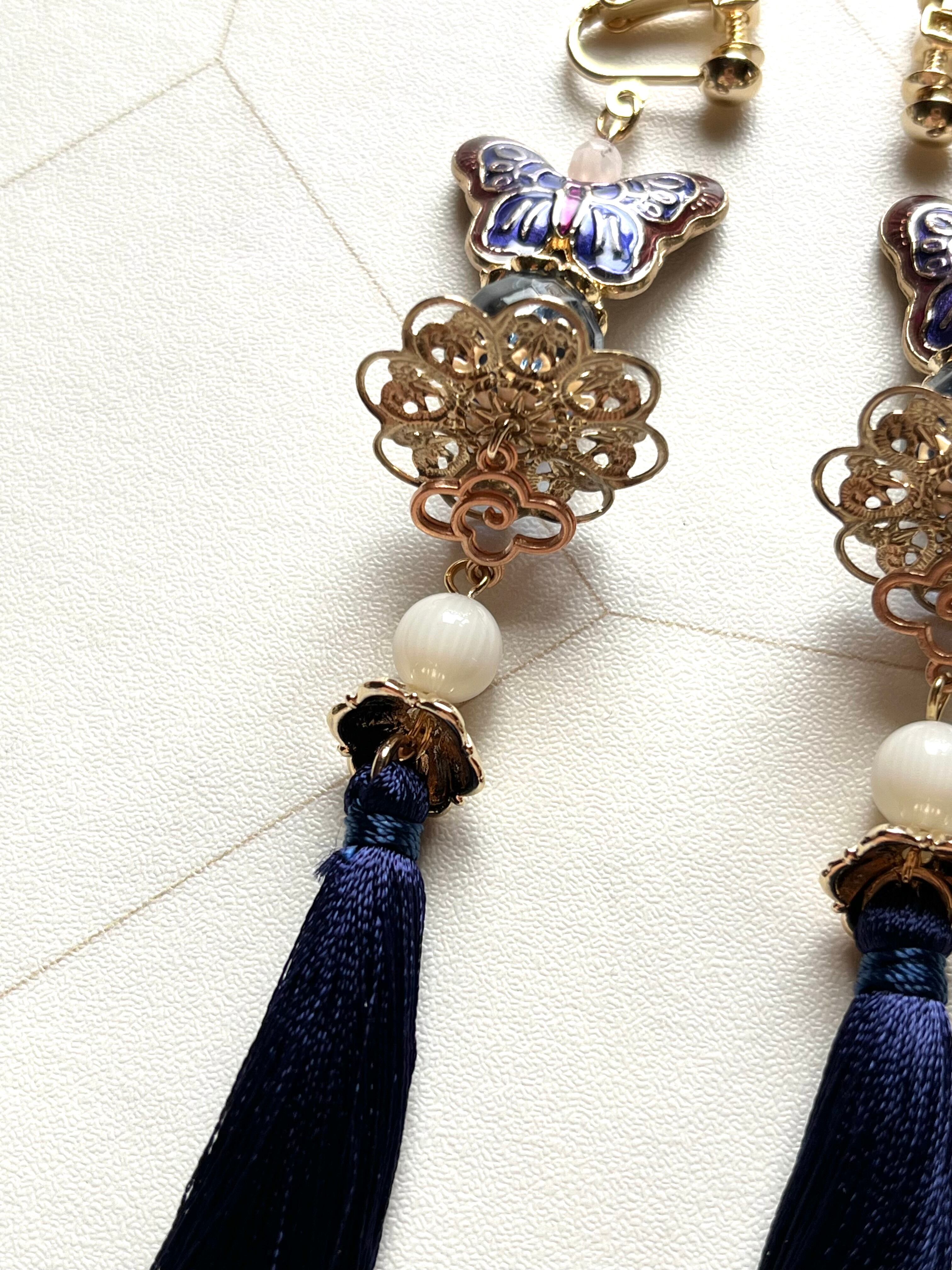 青揃えを基調に、シノワズリなデザインを楽しめるアクセサリーとなっています。